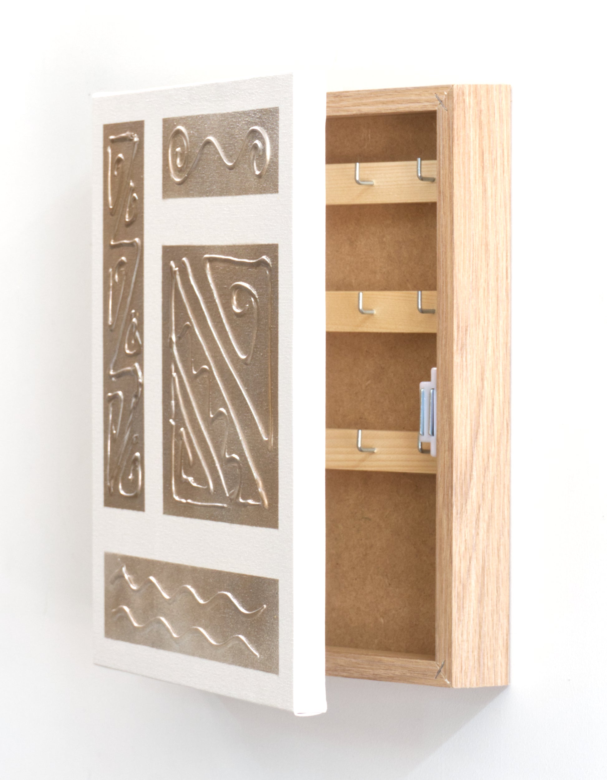 Armario para Llaves, Pintado a Mano, Abstracto Moderno, con Relieve, Medidas 26x31x6 cm, 100% Original, Madera Clara, con 15 Ganchos, Incluye Tacos y Tornillos para la Pared.