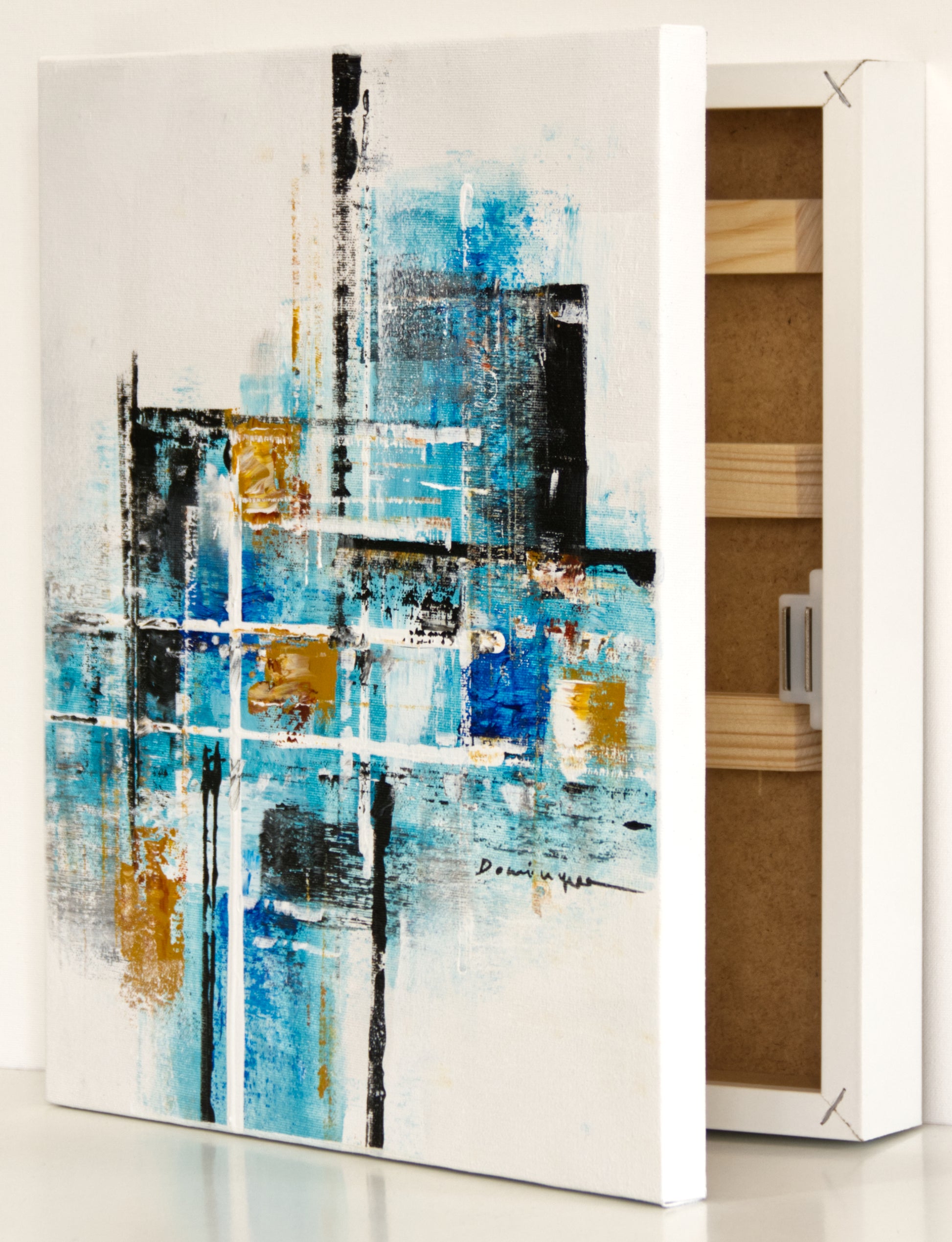 Armario para Llaves, Pintado a mano, con 12 ganchos, Abstracto en Verde Esmeralda y Ocre, 100% original, Firmado, Incluye tacos y tornillos.