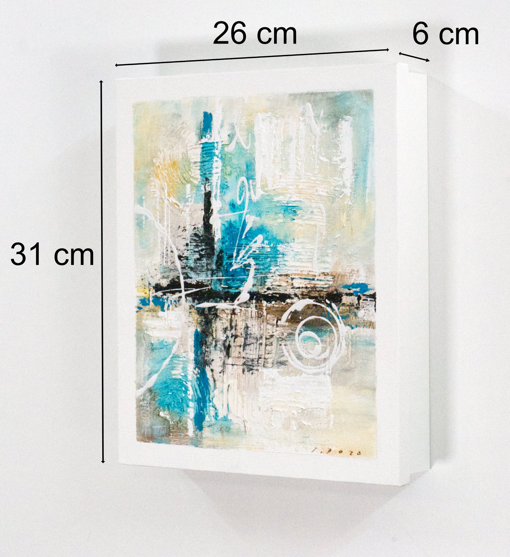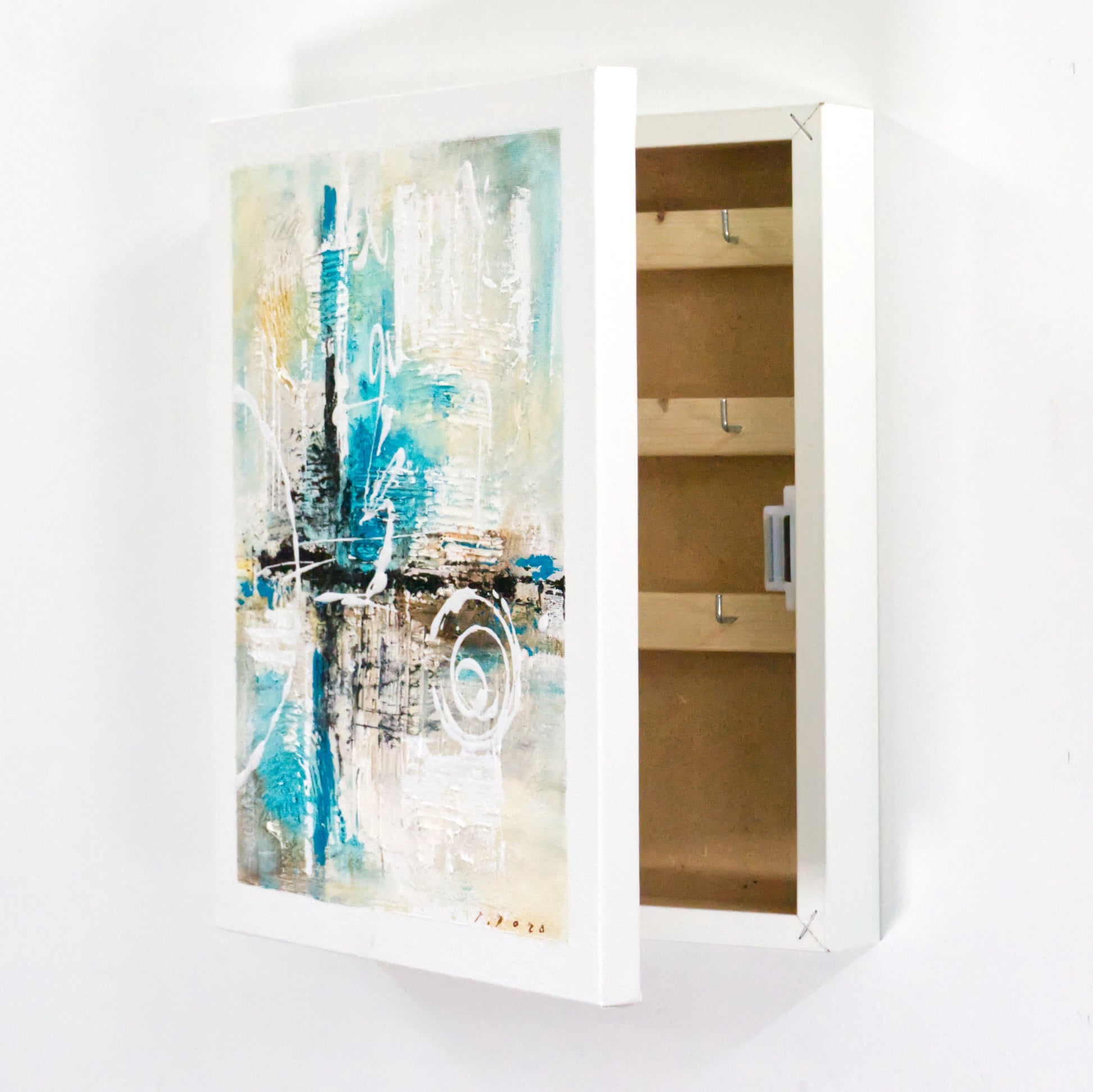 Armario para Llaves, Pintado a mano, con 12 ganchos, Abstracto en Turquesa, con relieve, 100% original, Firmado, Incluye tacos y tornillos.