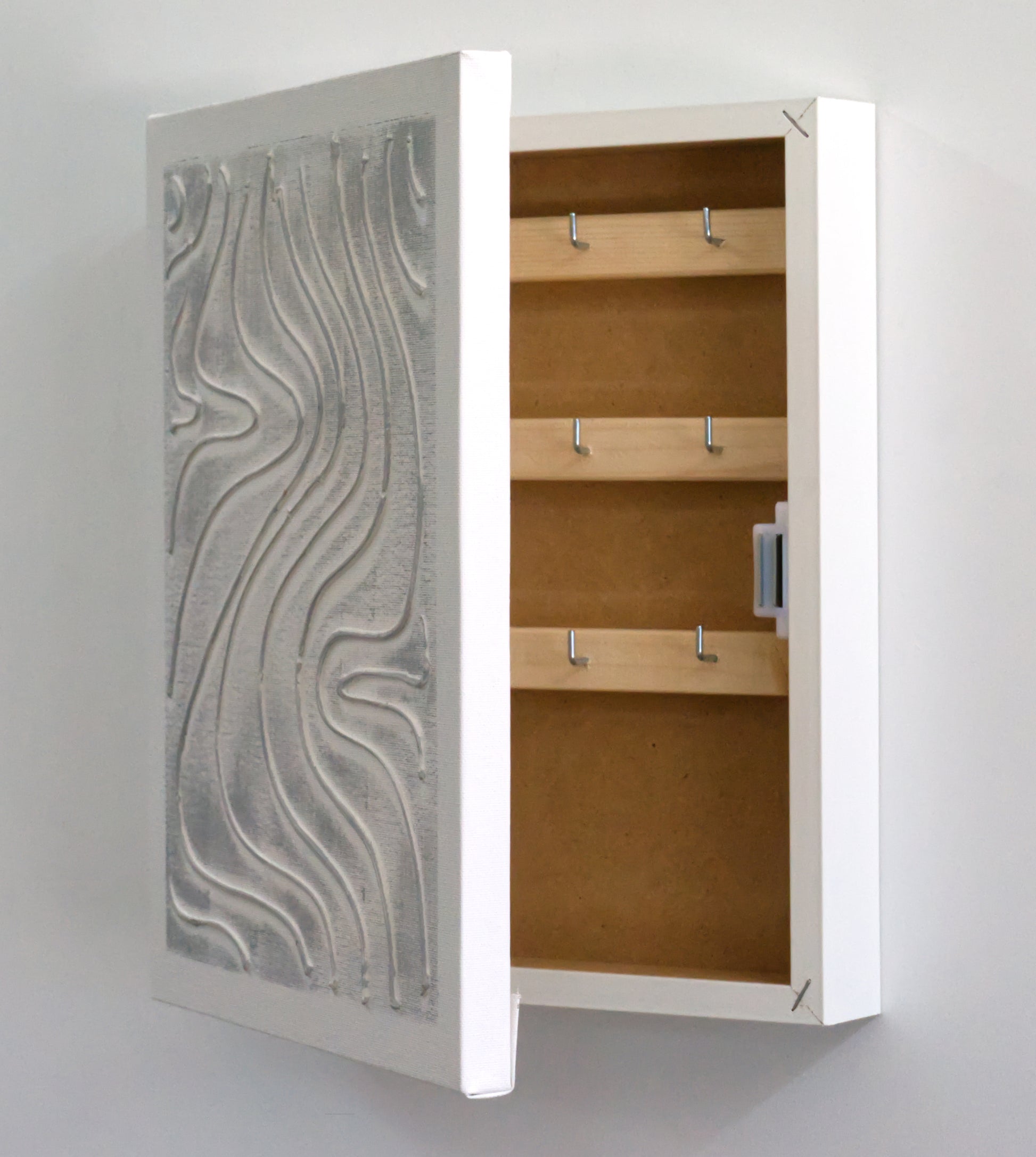 Armario para Llaves, Pintado a mano, con 12 ganchos, Minimalista Ondas, con relieve, 100% original, Incluye tacos y tornillos.