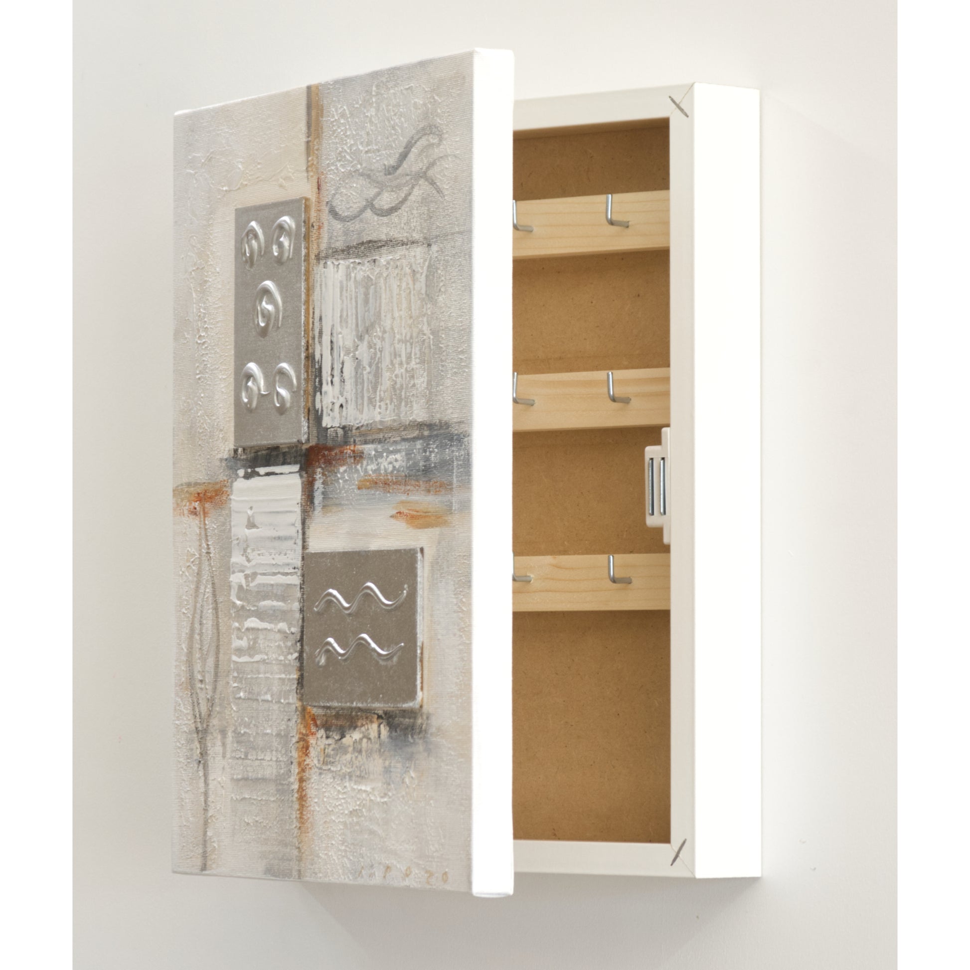 Armario para Llaves, Pintado a mano, con 12 ganchos, Minimalista en tonos claros, con relieve, 100% original, Incluye tacos y tornillos. Firmado