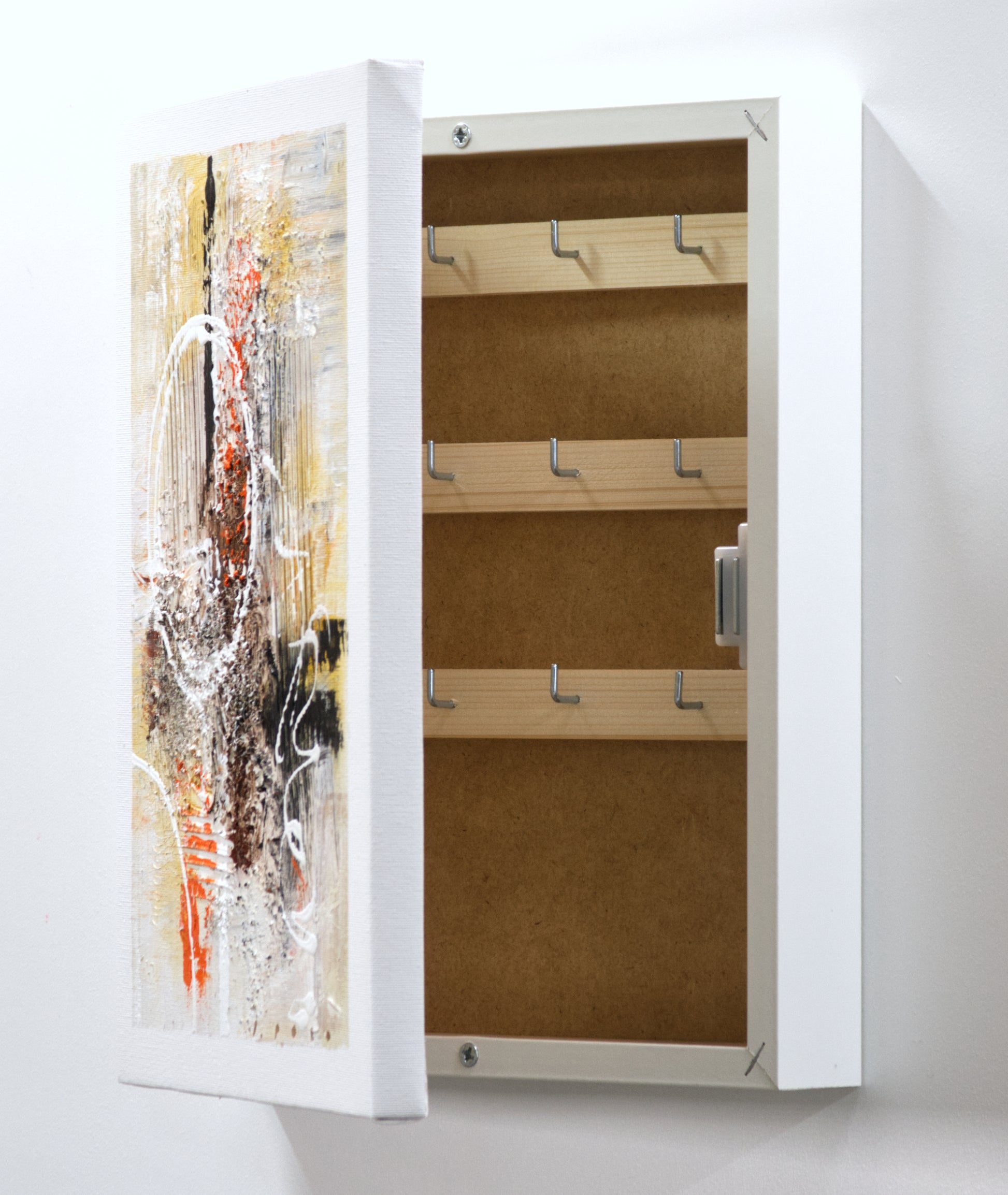 Armario para Llaves, Pintado a mano, con 12 ganchos, Moderno, Abstracto Ocre y Marrón, 100% original, Firmado, Incluye tacos y tornillos