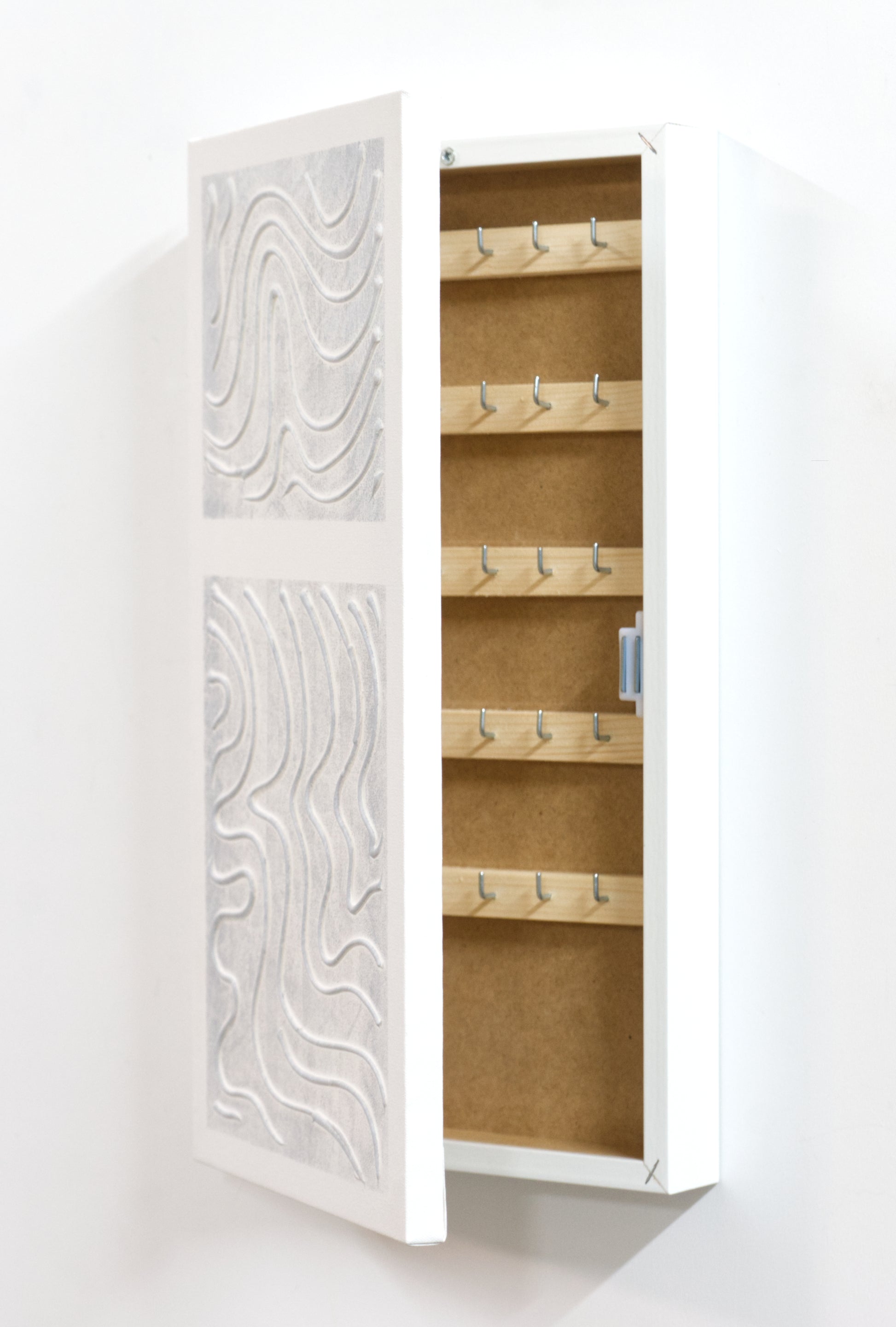 Armario para Llaves, Pintado a mano, con 30 ganchos, Minimalista Ondas, con relieve, 100% original, Incluye tacos y tornillos.