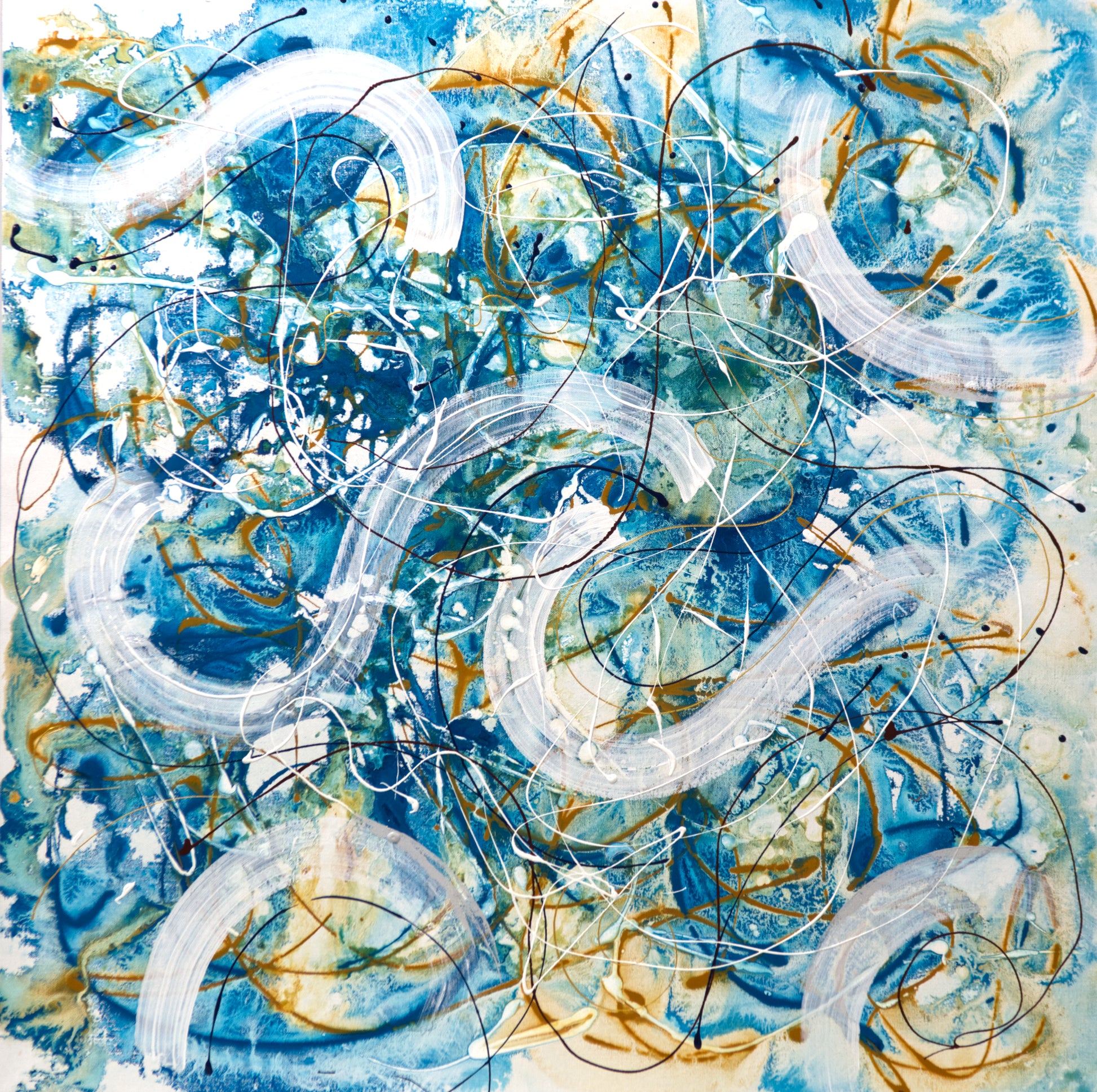 Cuadro Abstracto, Colores Vivos, Azul, Ocre, 100x100 cm, Sobre Lienzo, 100% Original, Firmado (Copy) (Copy)