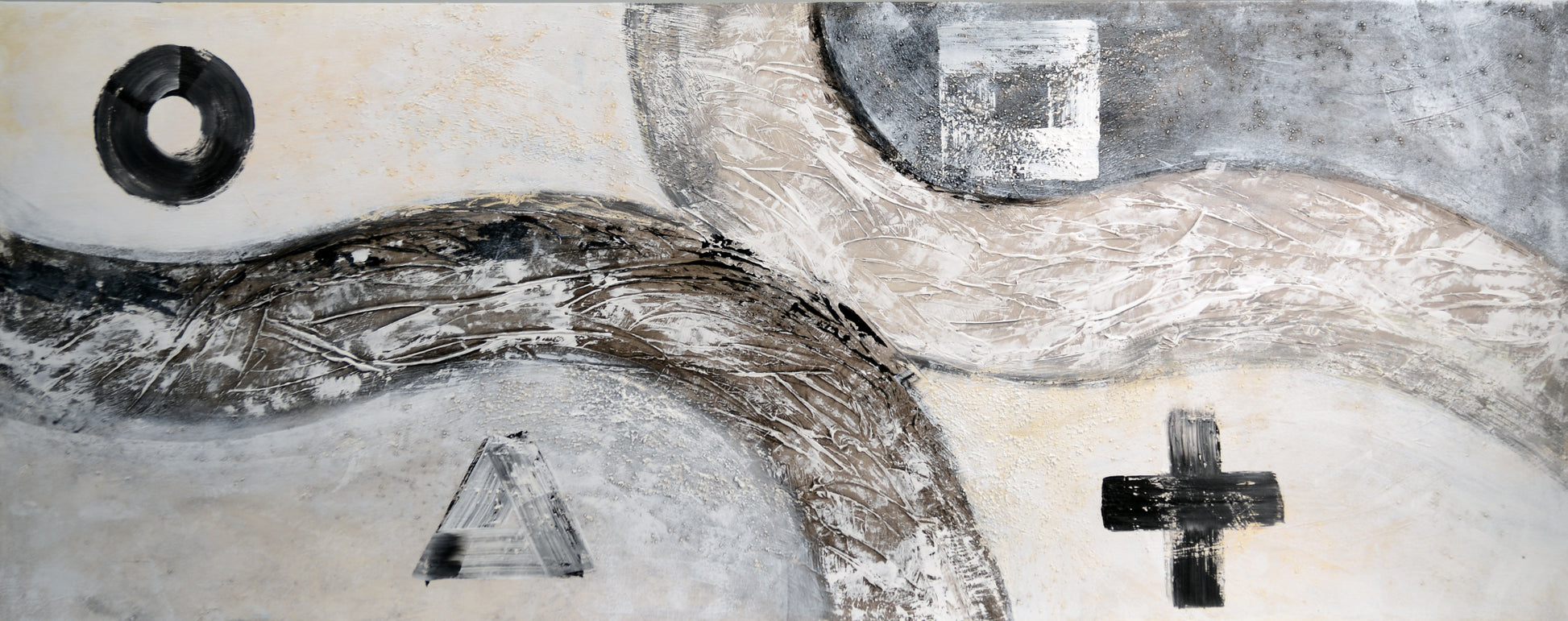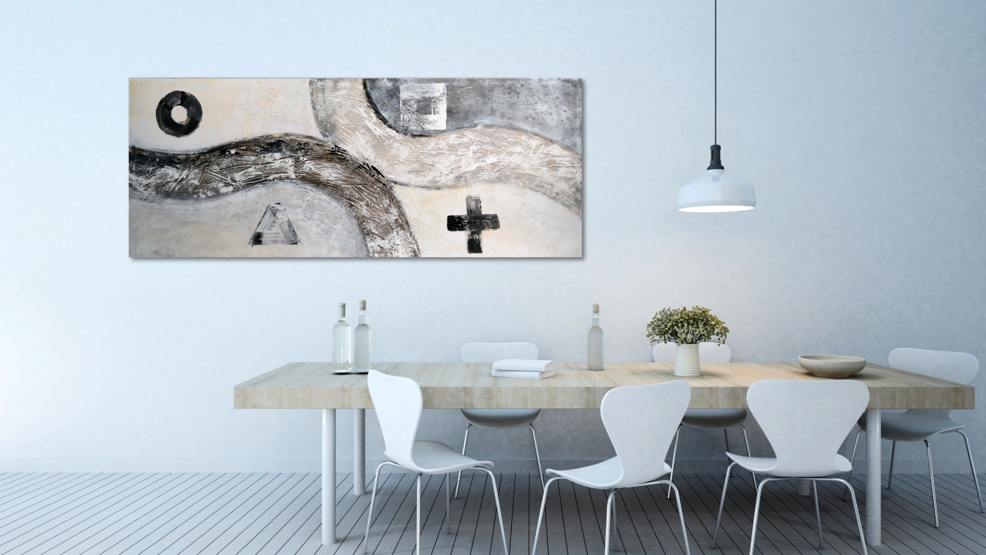 CUADRO PINTADO "ABSTRACTO FLOW" GRIS 150X60CM