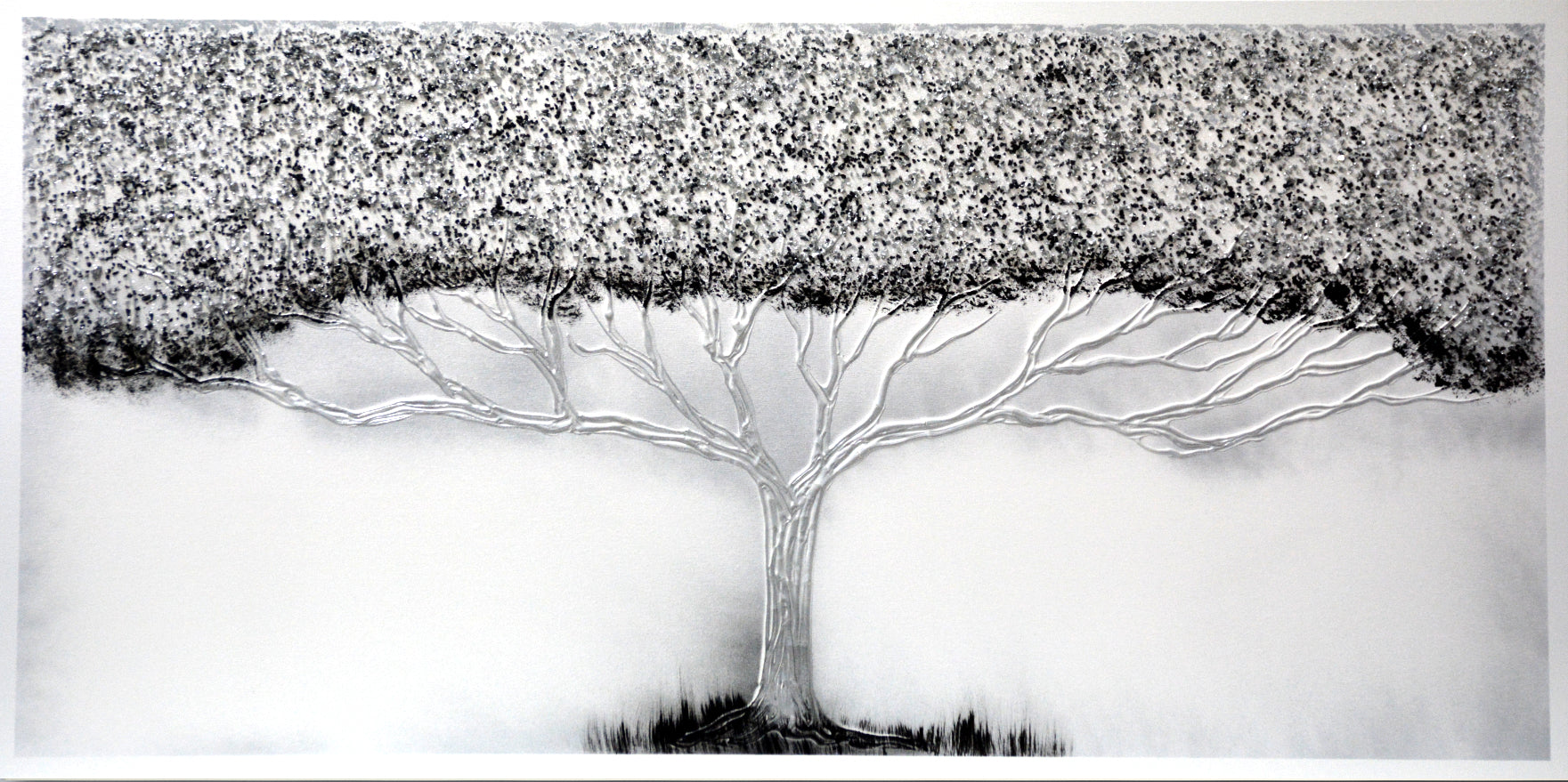 CUADRO PINTADO "ÁRBOL DE LA VIDA" PLATA 140X70CM