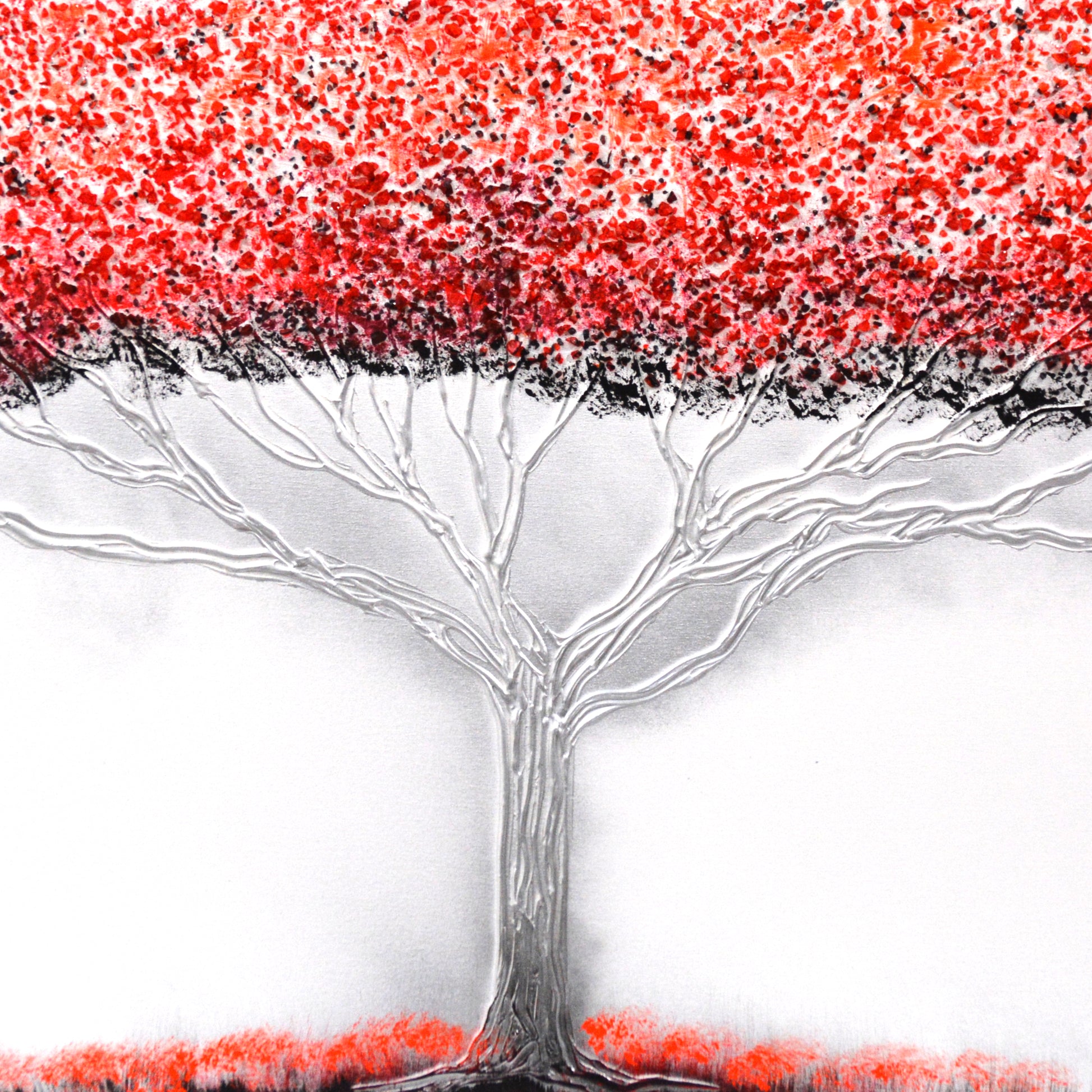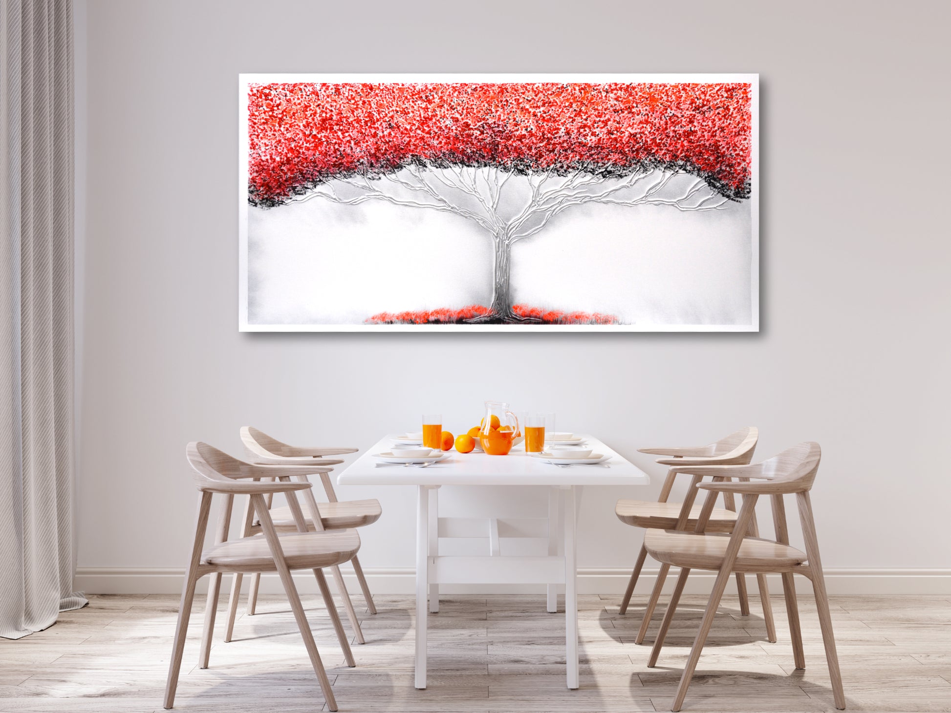 CUADRO PINTADO "ÁRBOL DE LA VIDA" ROJO 140X70CM