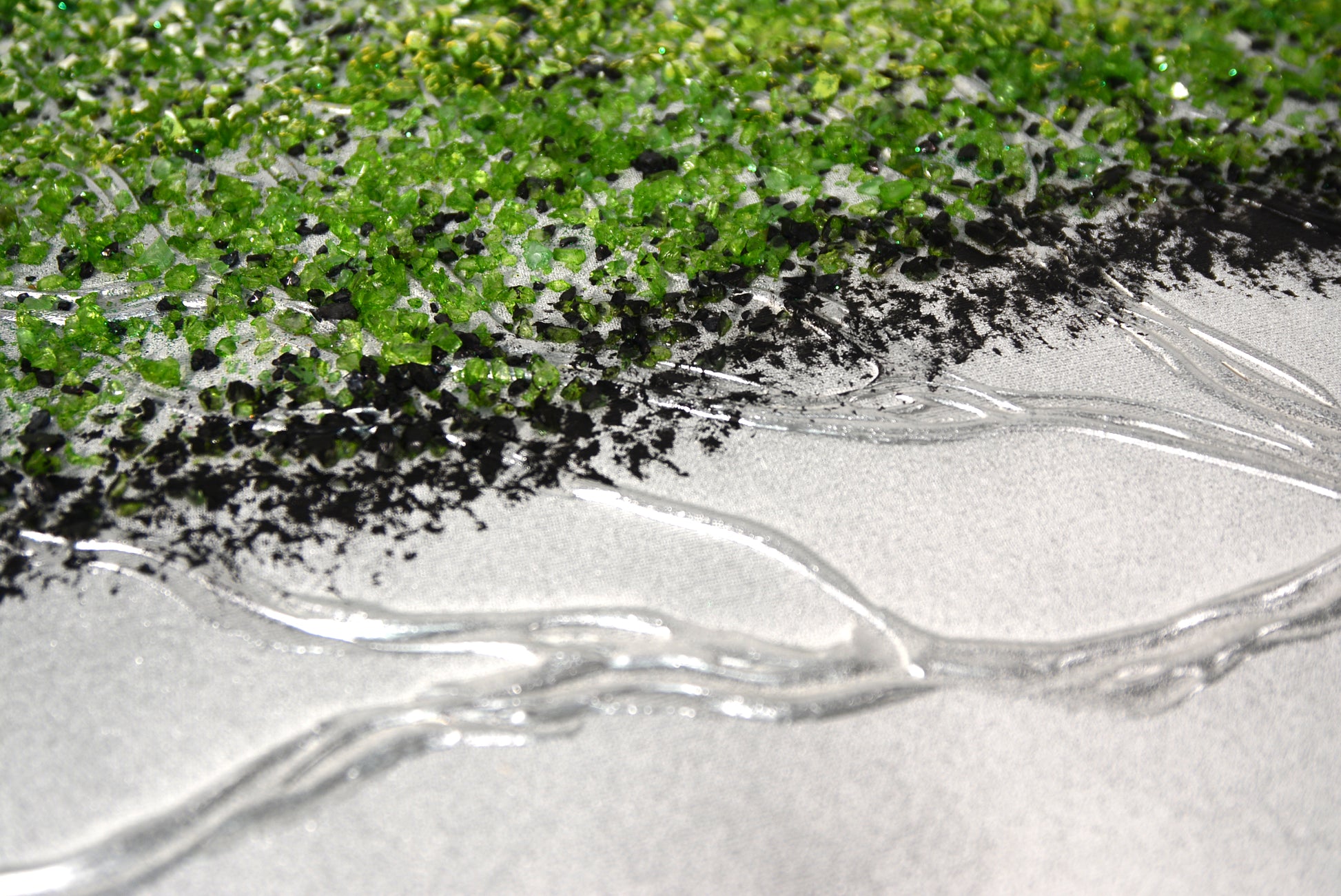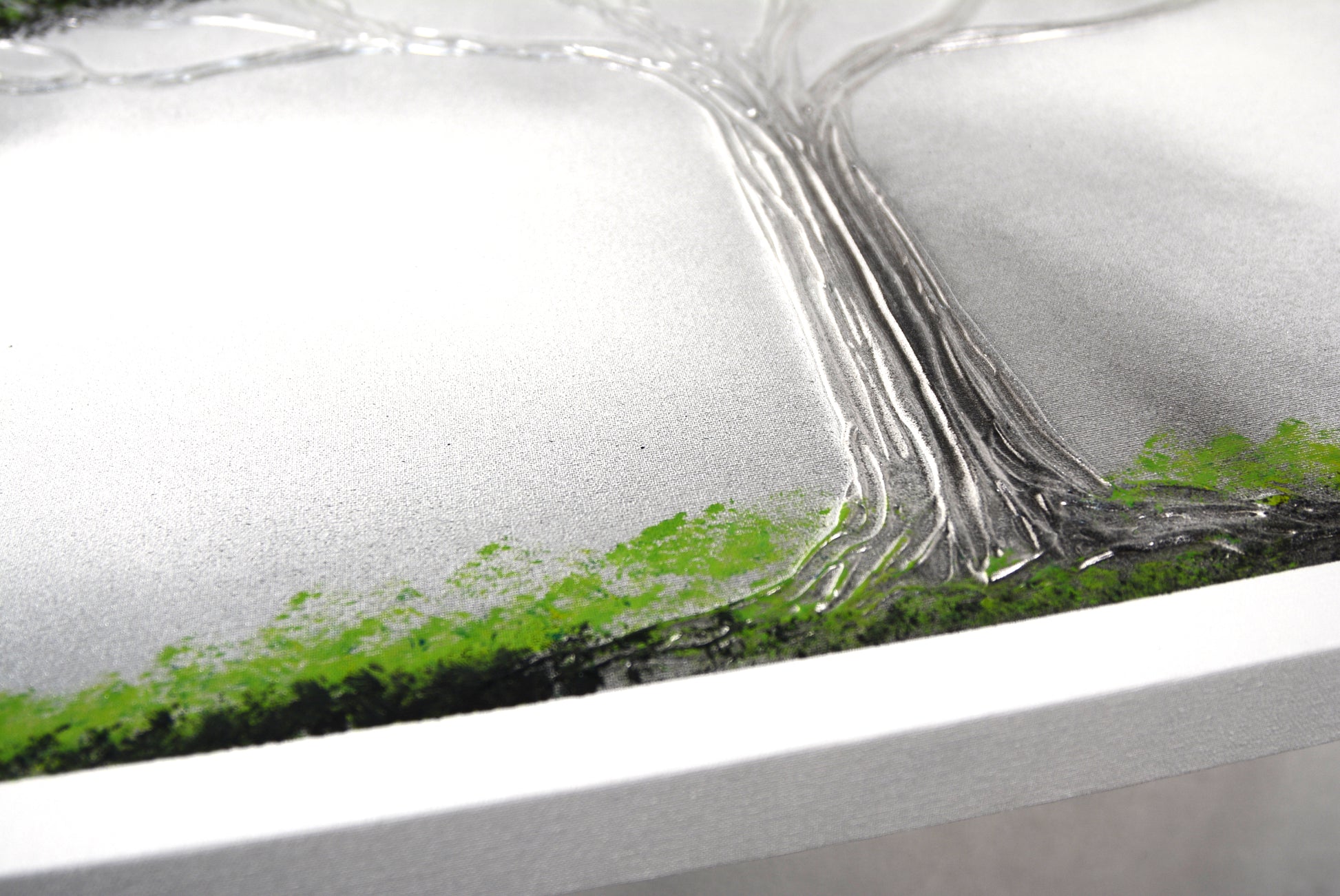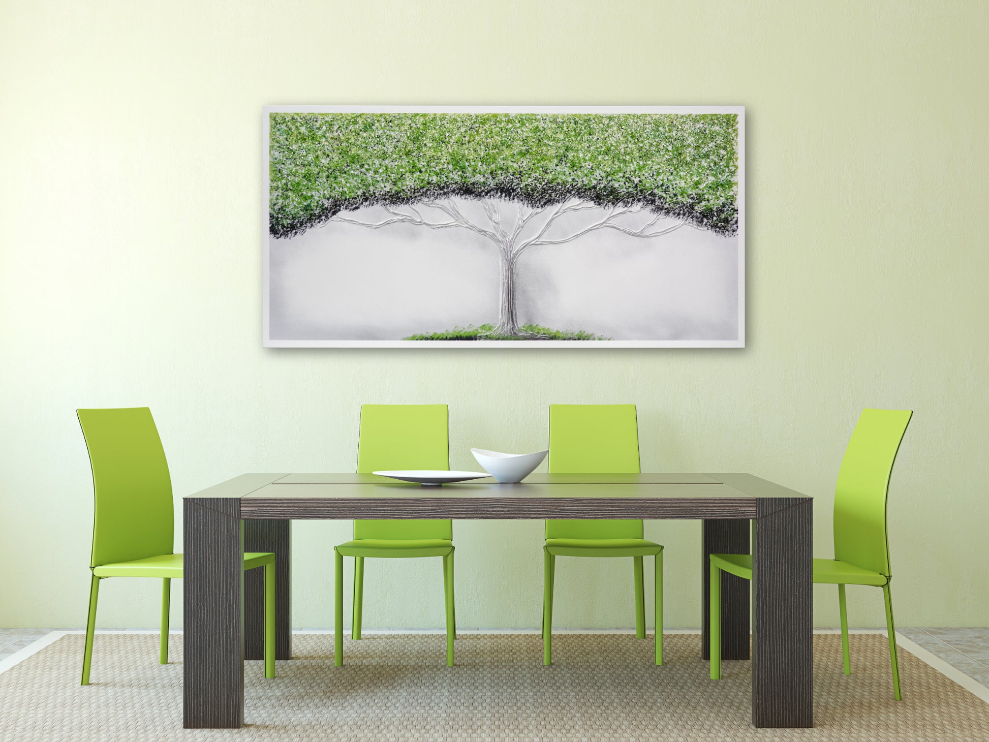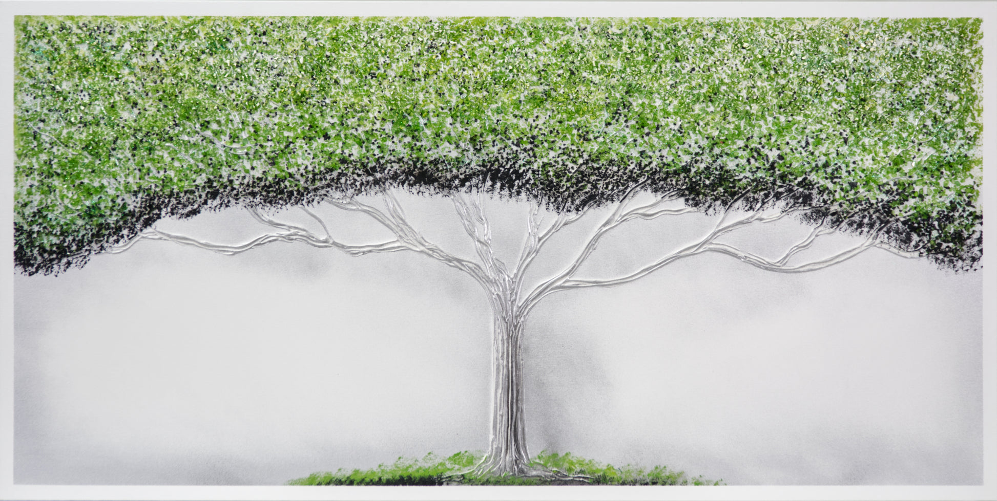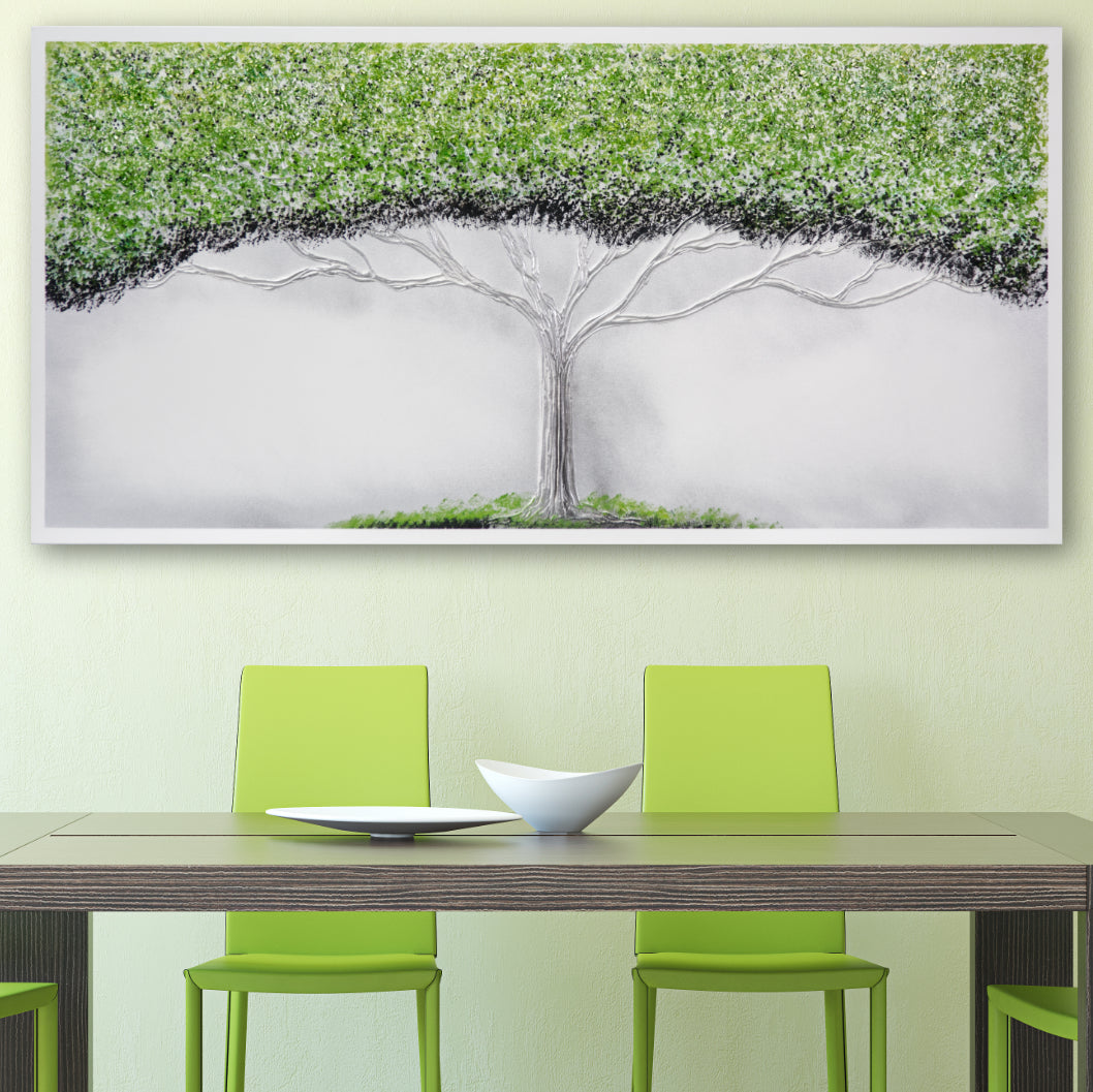 CUADRO PINTADO "ÁRBOL DE LA VIDA" VERDE 140X70CM CON PIEDRAS BRILLANTES Y RELIEVE PLATA