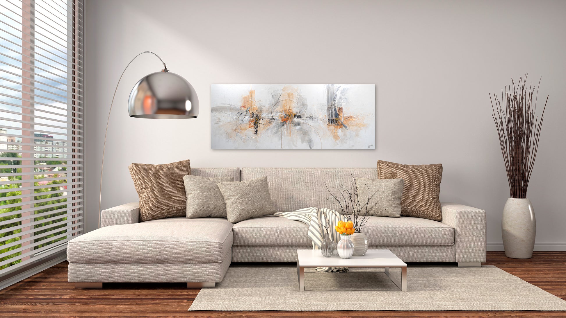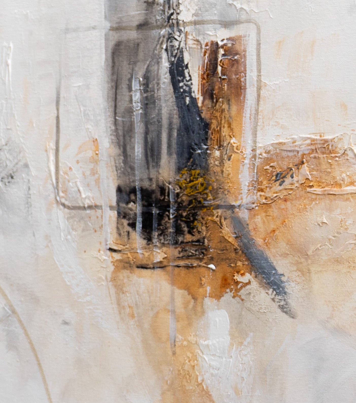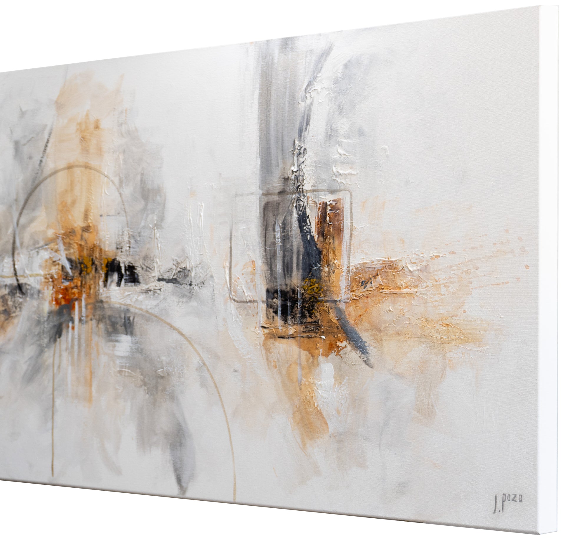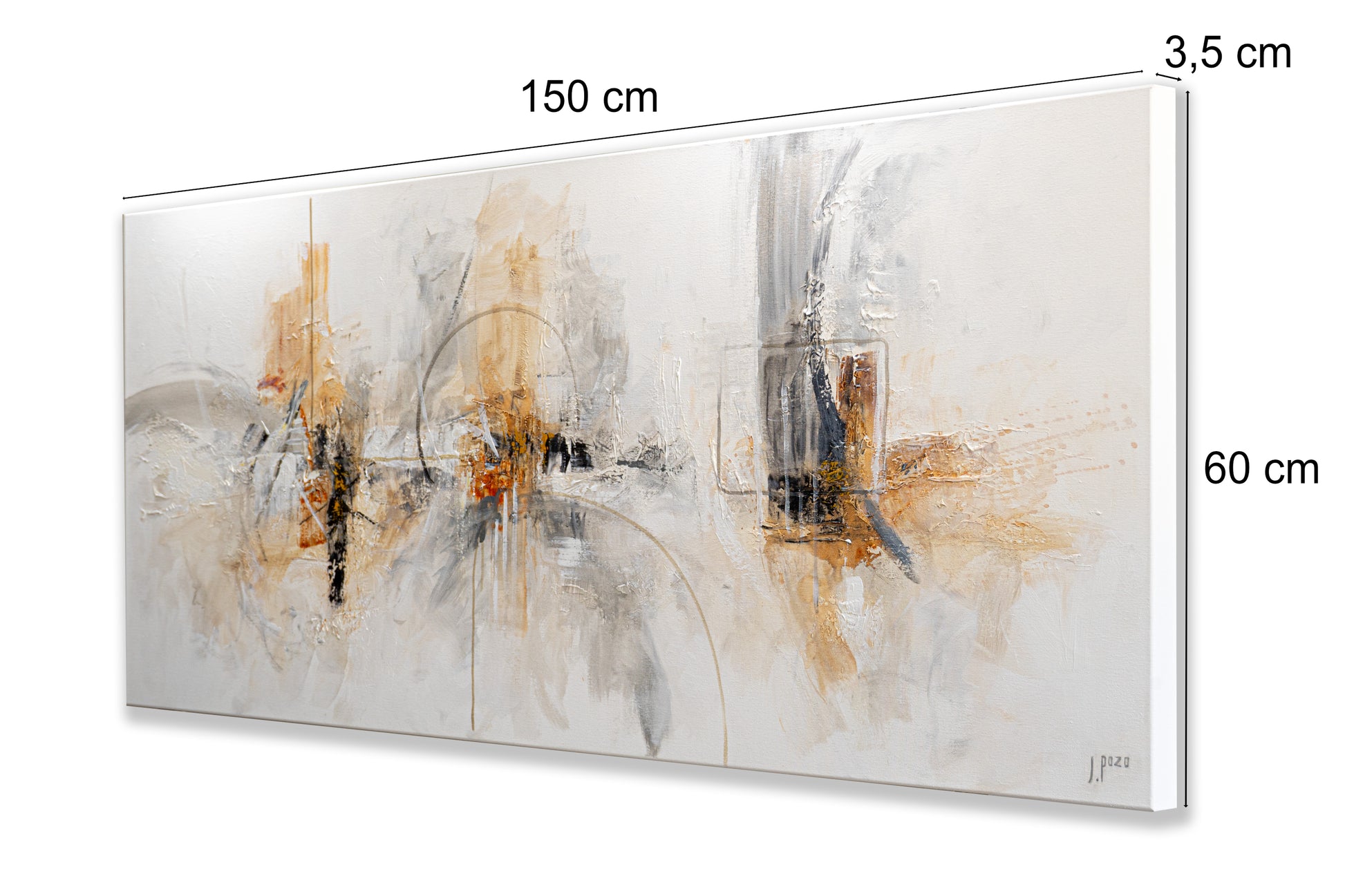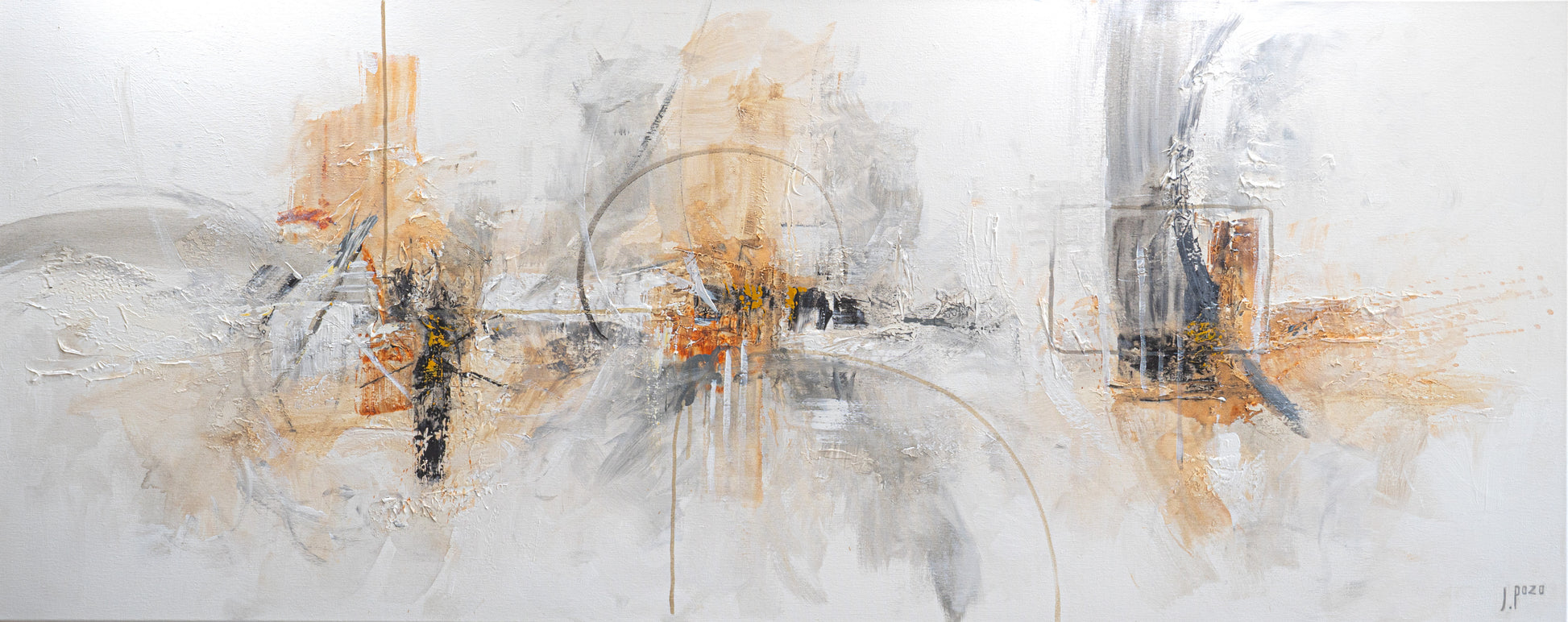 Cuadro Pintado 150x60 cm Abstracto en colores claros, con Relieve. Sobre lienzo, firmado
