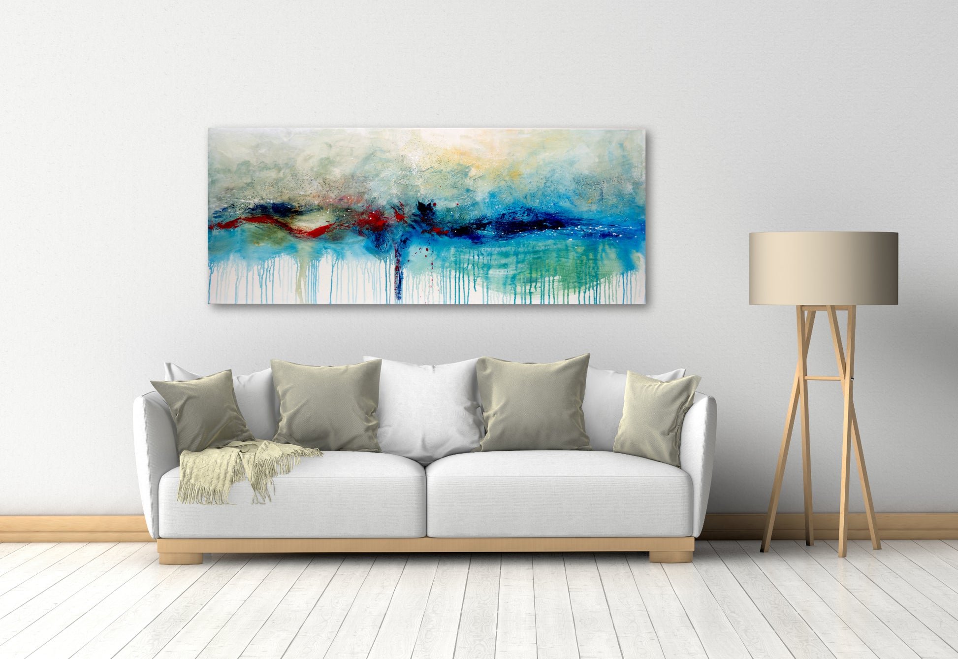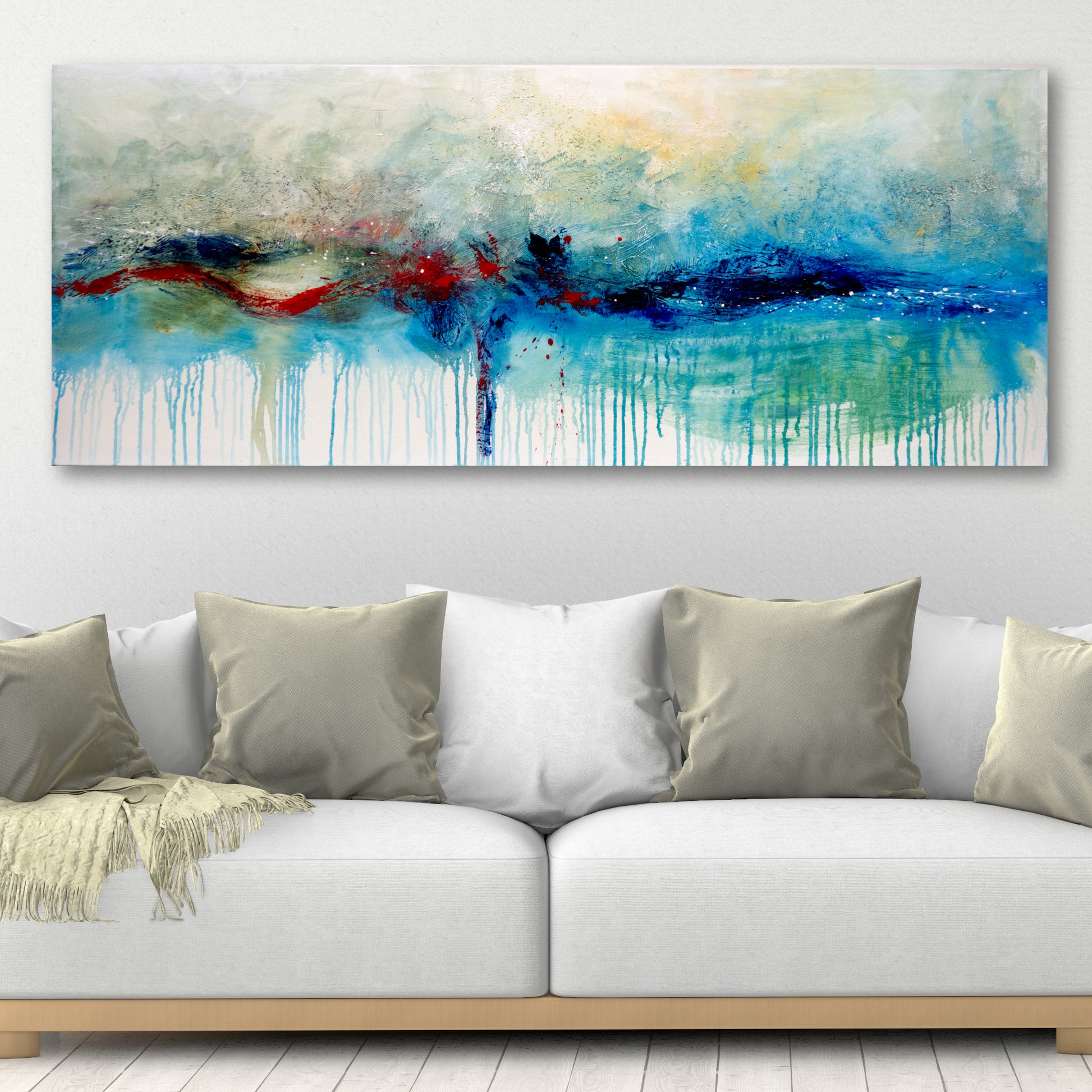CUADRO PINTADO ABSTRACTO "OLEAJE" 150X60CM