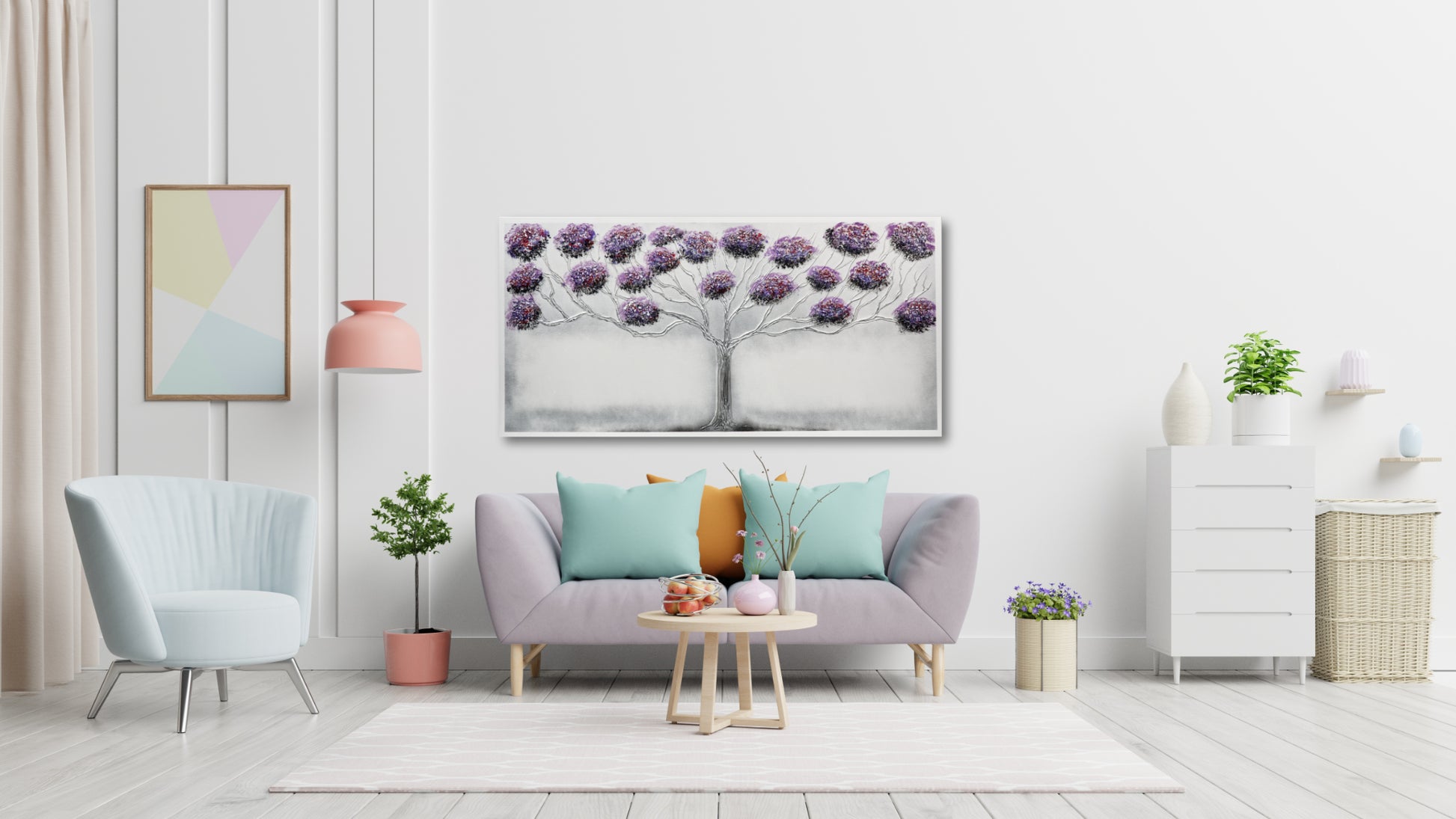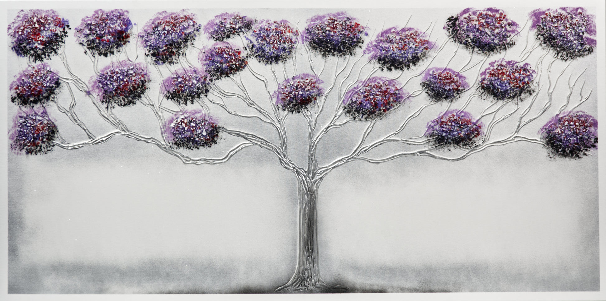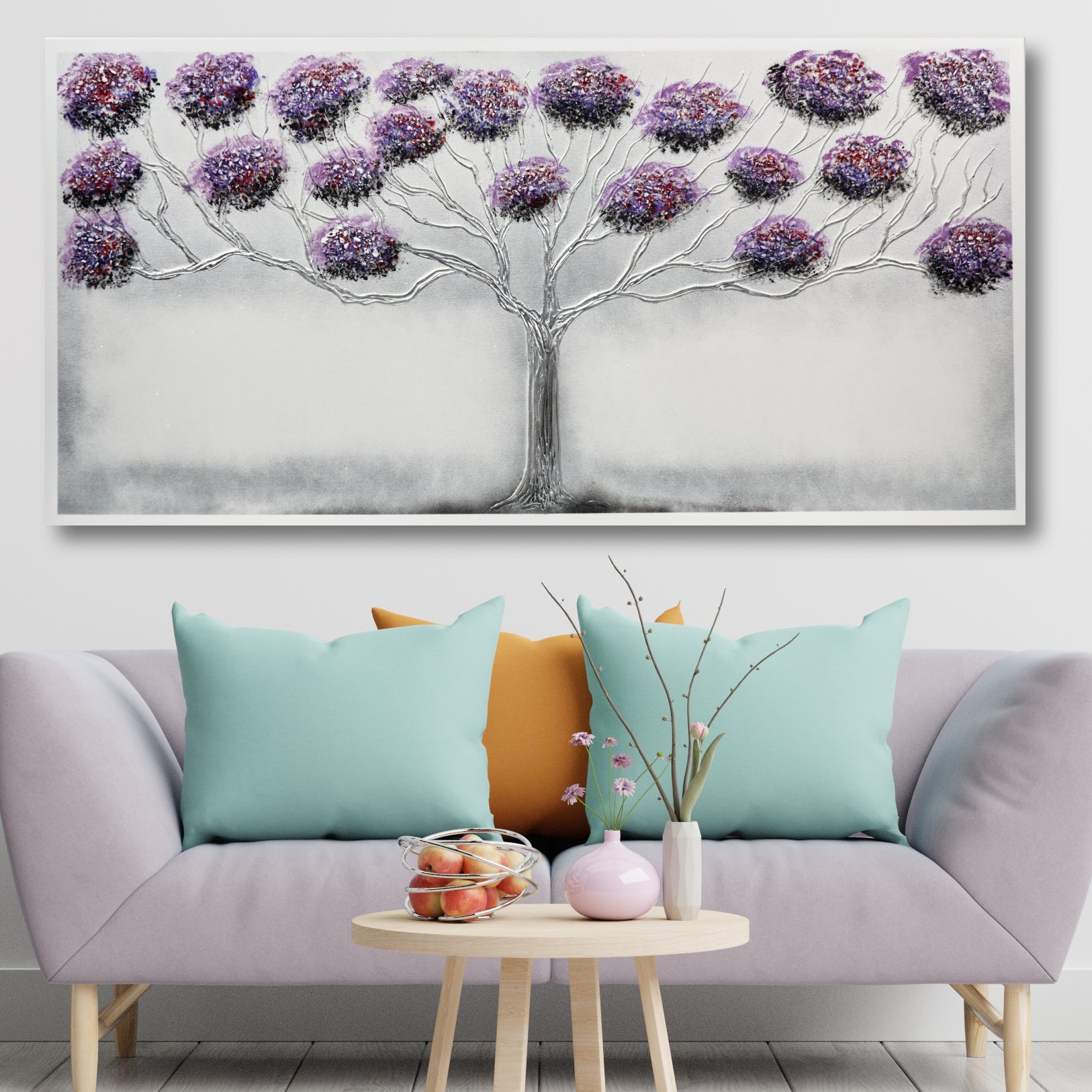 CUADRO PINTADO "ÁRBOL EN PRIMAVERA" LILA 140X70CM