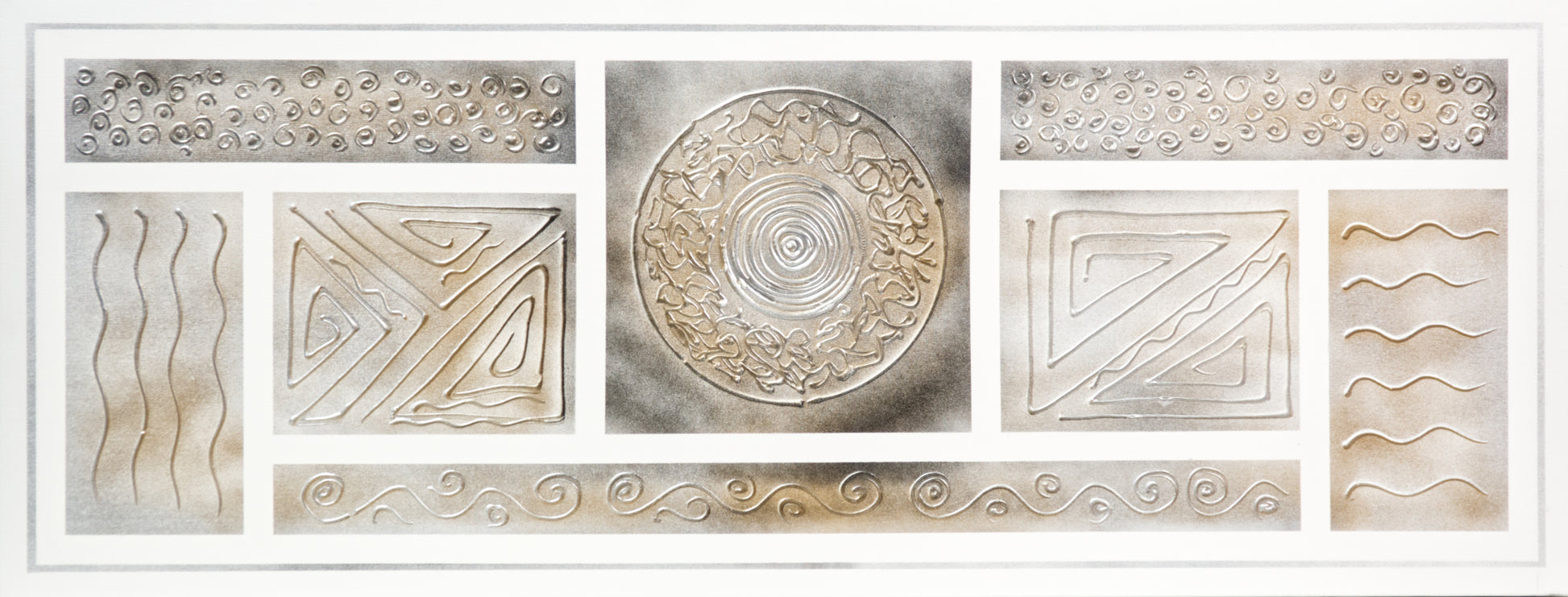 .Técnica: Pintura acrílica, reflejos plata y pasta relieve.