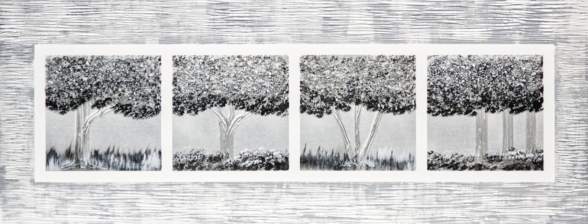 CUADRO PINTADO "CUATRO ARBOLES PLATA" 130X50CM