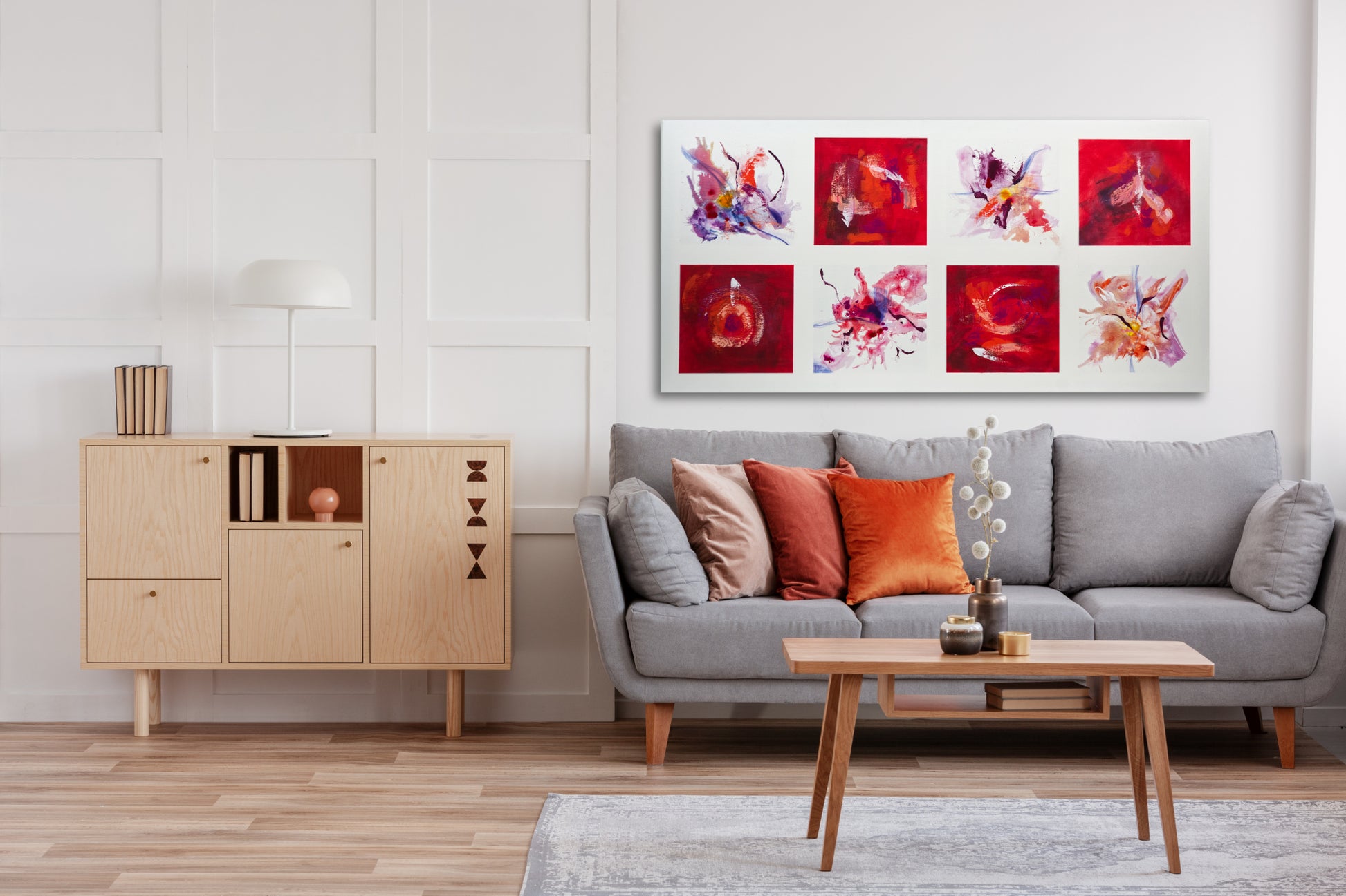 CUADRO PINTADO ABSTRACTO EN ROJOS 140X70 CM SOBRE LIENZO, 100% ORIGINAL