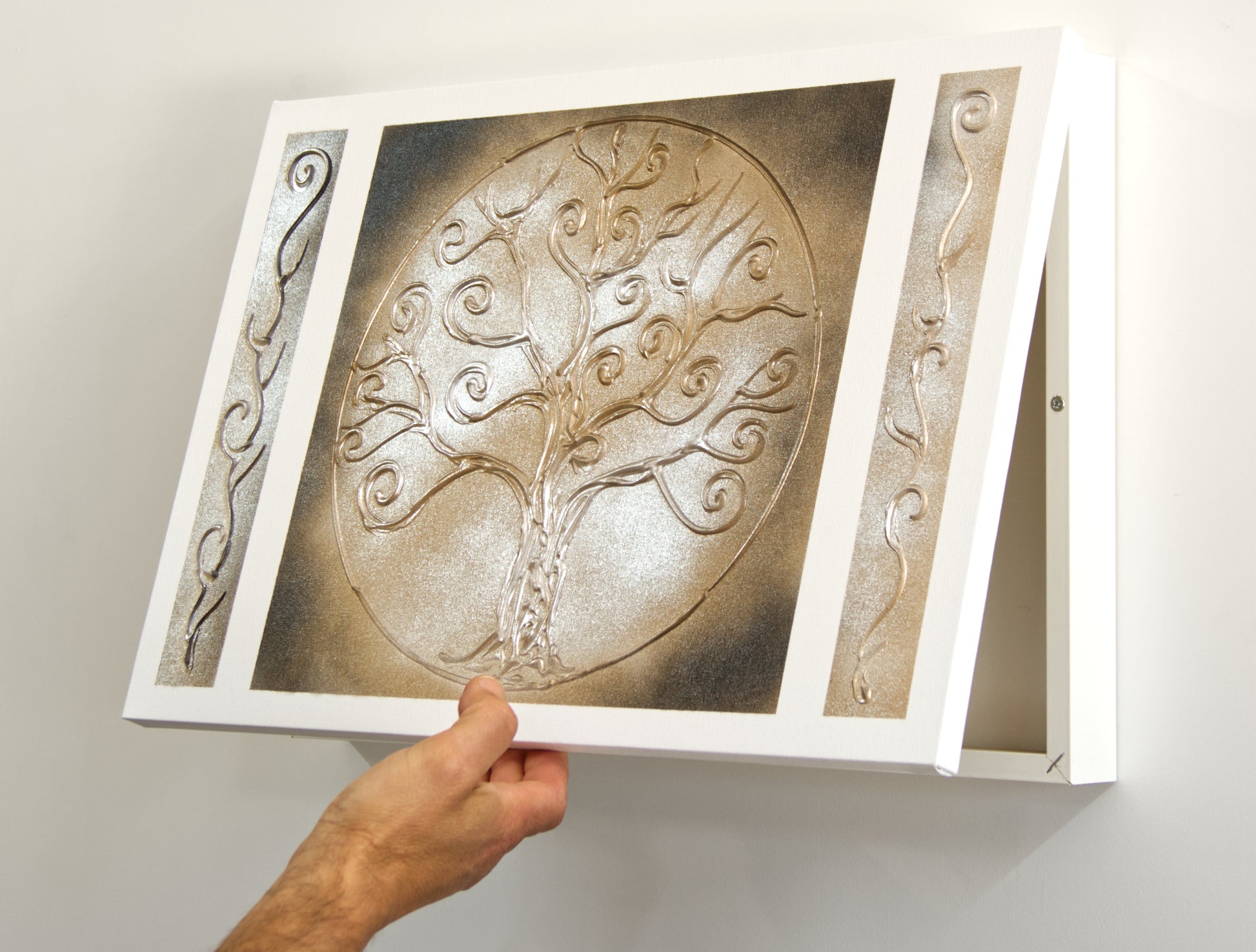 Tapa de Contador (GRANDE) Pintada a Mano, 100% Original, Árbol de la Vida en Dorado, Incluye Tornillos y Tacos. Medidas: Interior 45x30x4 cm