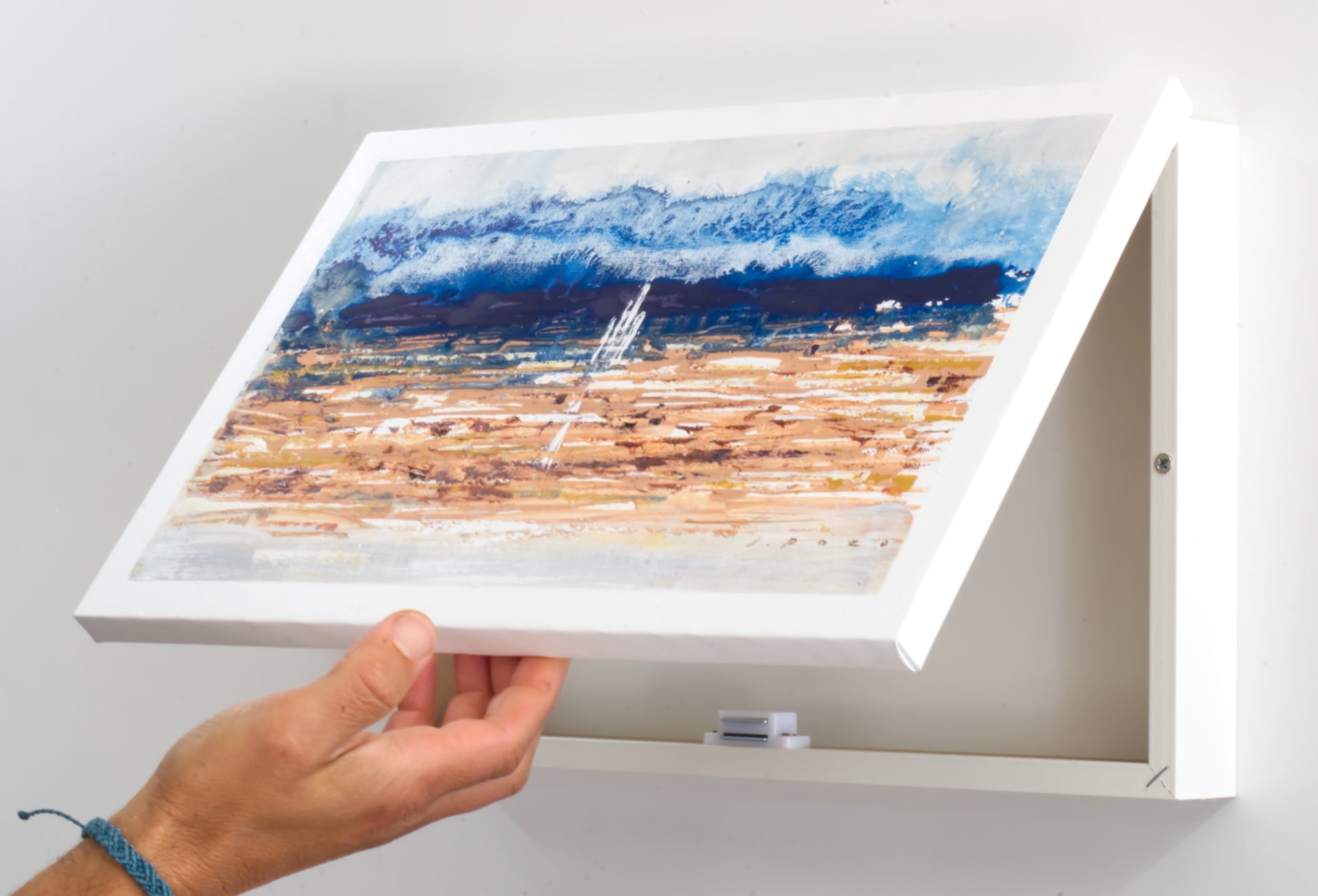 Tapa de Contador Pintada a Mano, 100% Original, Paisaje moderno, Incluye Tornillos y Tacos. Medidas: Interior 37x22x4cm Exterior 41x26x6cm