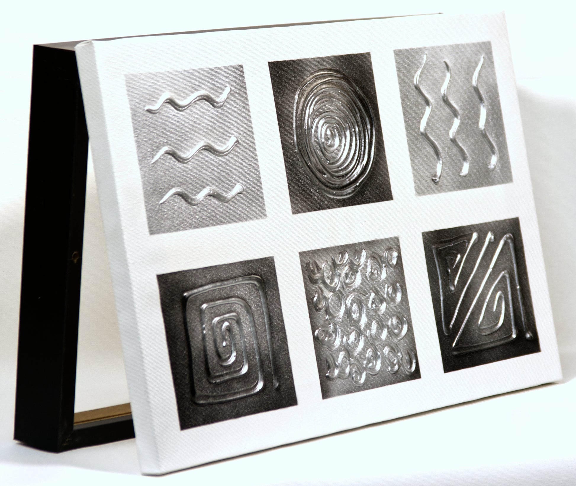 Tapa de Contador Pintada a Mano, 100% Original, Ábstracta, En Plata y Negro, Incluye Tornillos y Tacos. Medidas: Interior 37x22x4cm Exterior 41x26x6cm