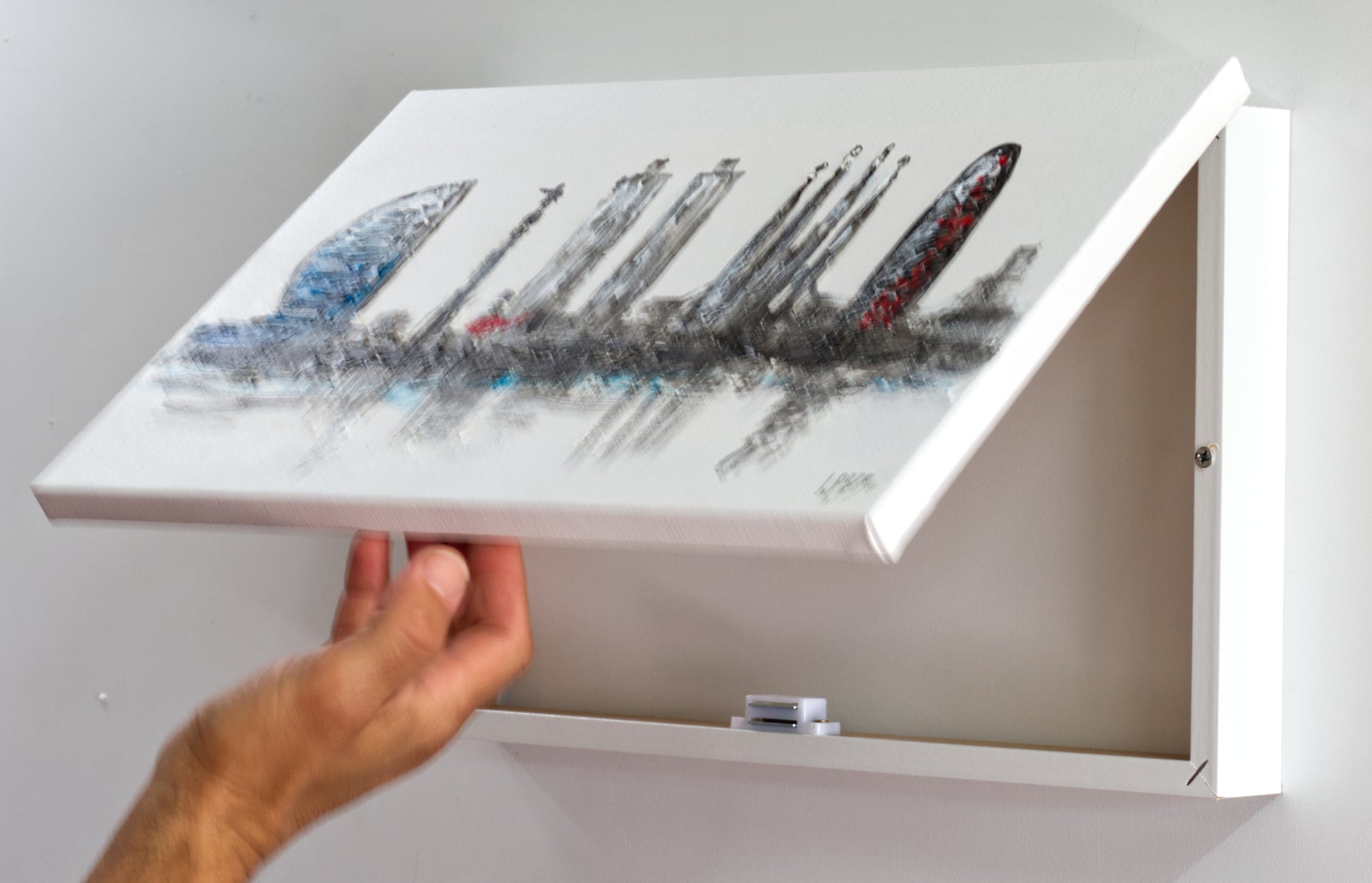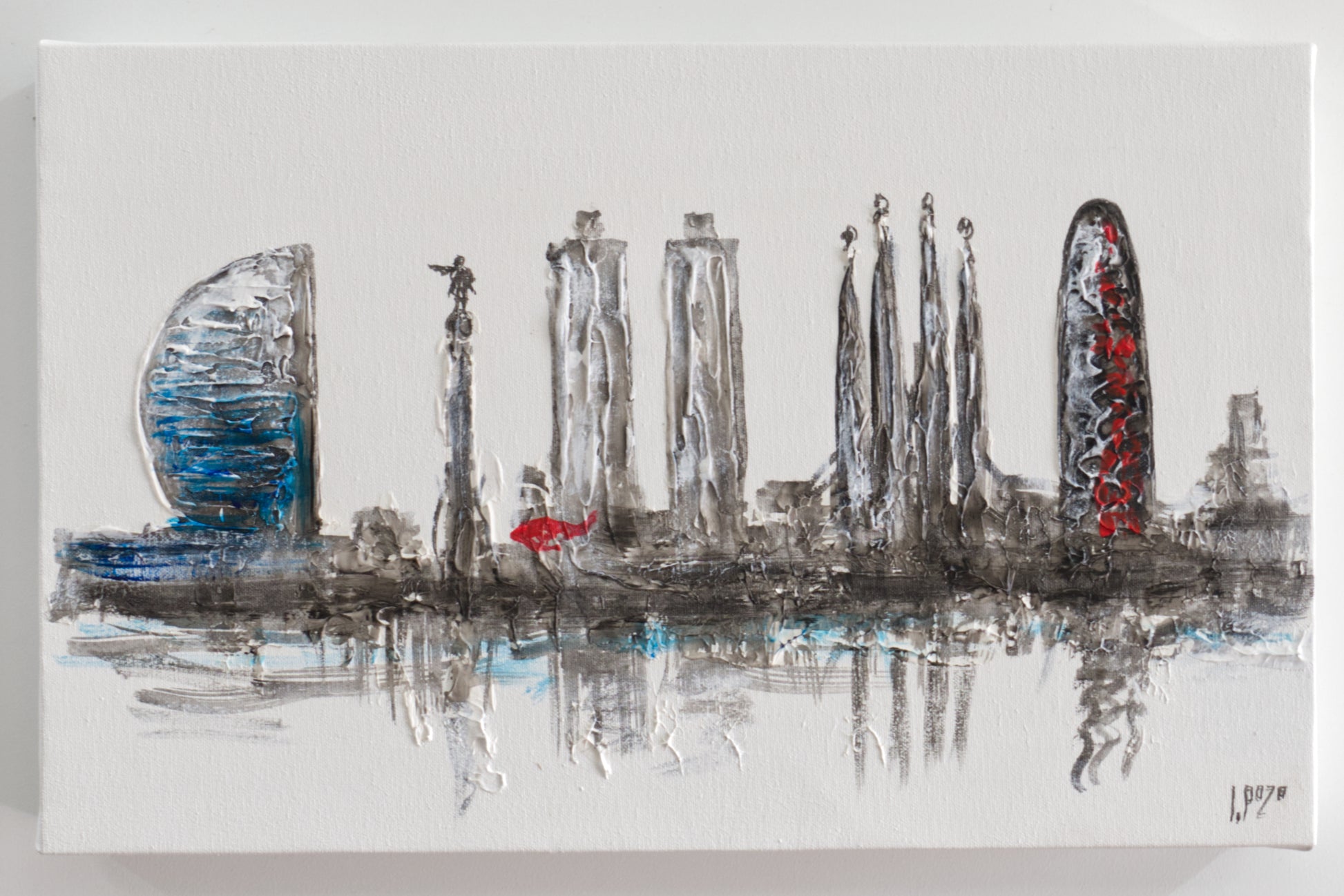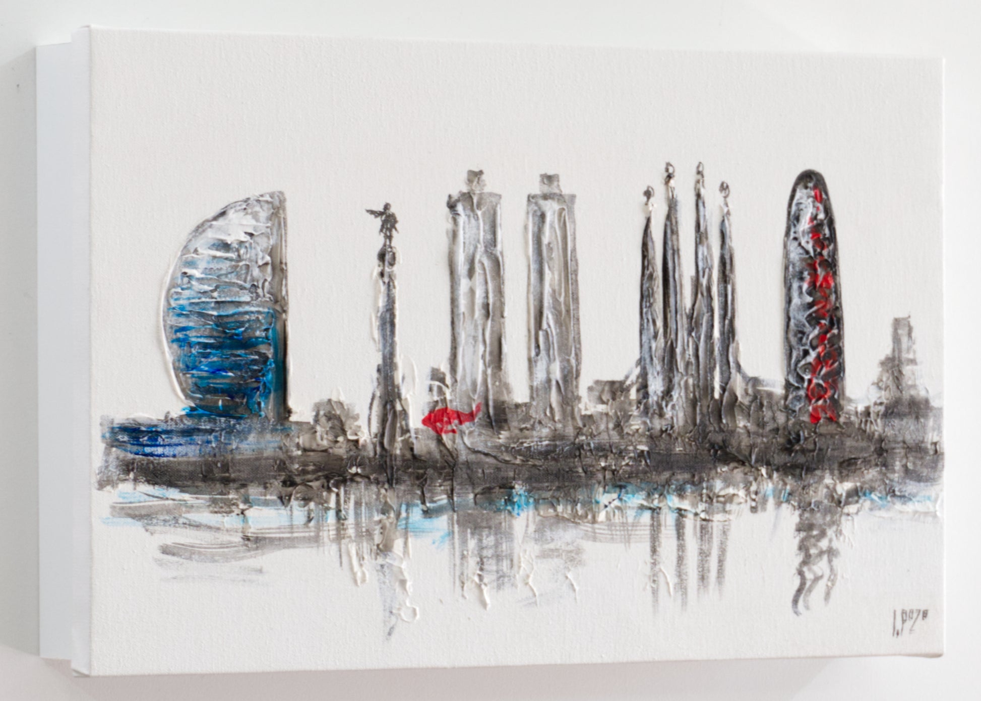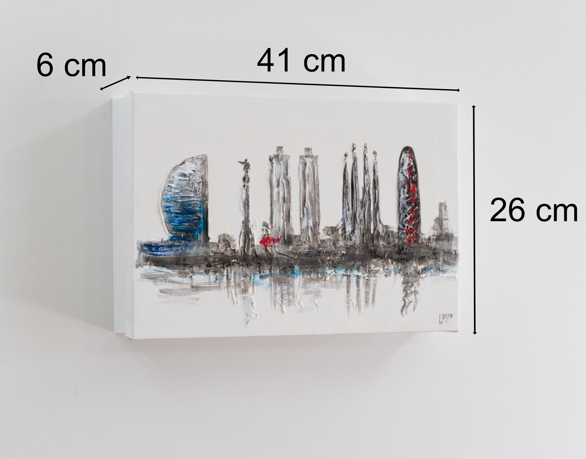 Tapa de Contador Pintada a Mano, 100% Original, Barcelona skyline, Con Relieve, Incluye Tornillos y Tacos. Medidas: Interior 37x22x4cm Exterior 41x26x6cm (Copia)