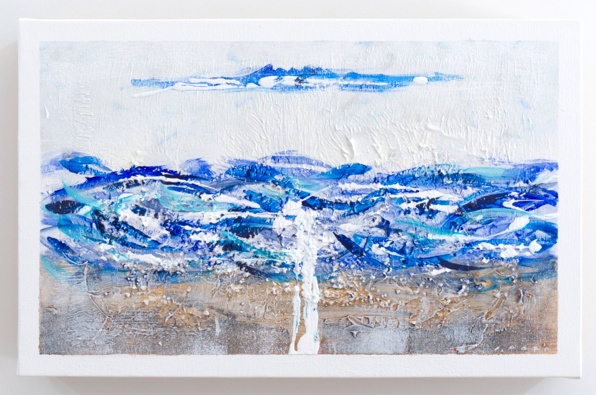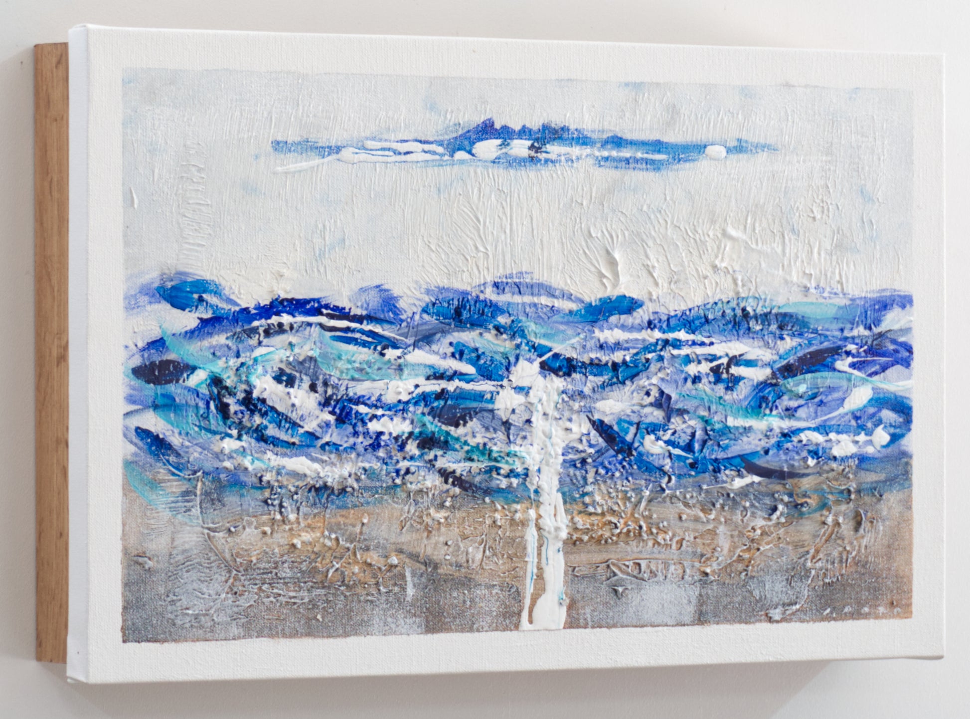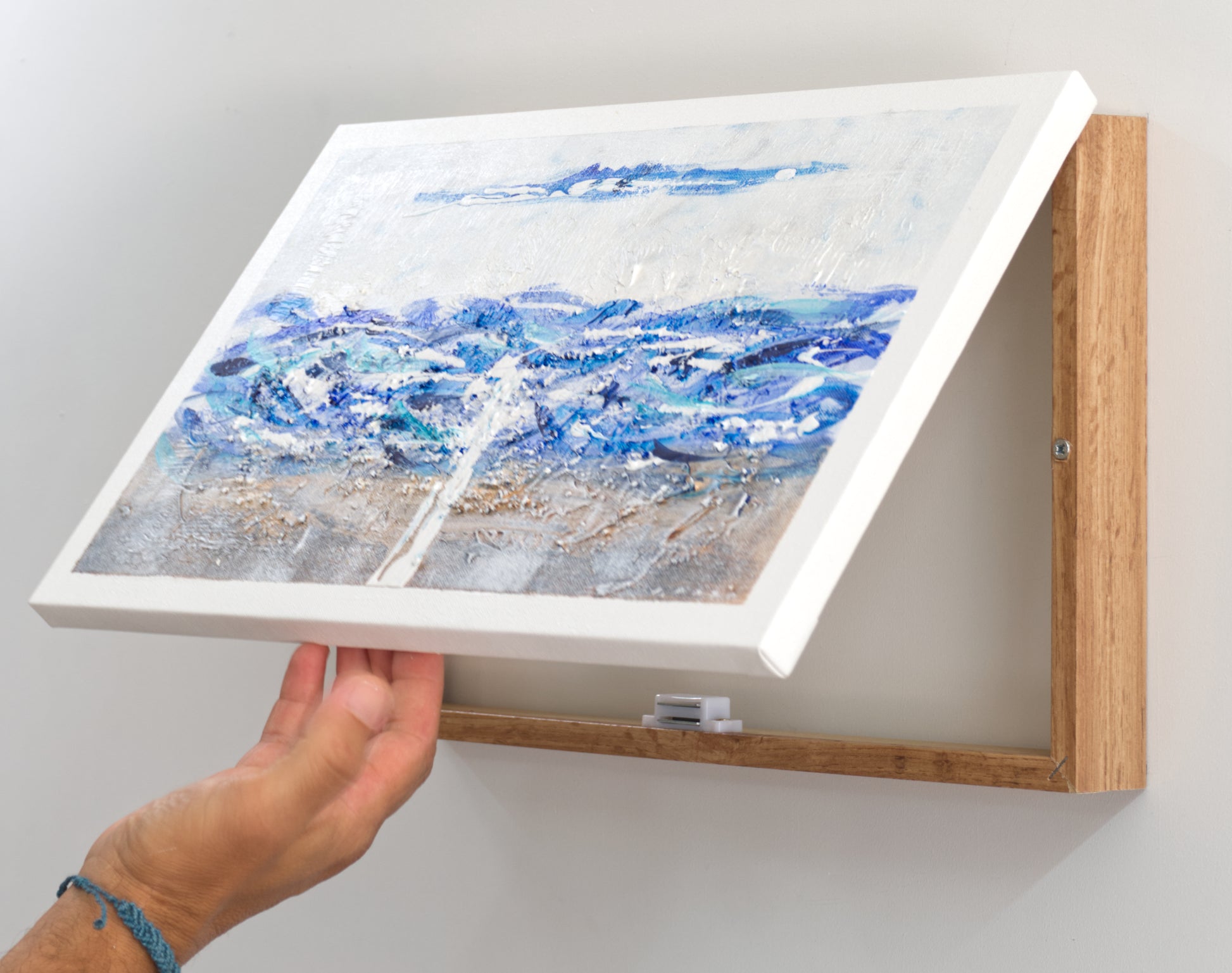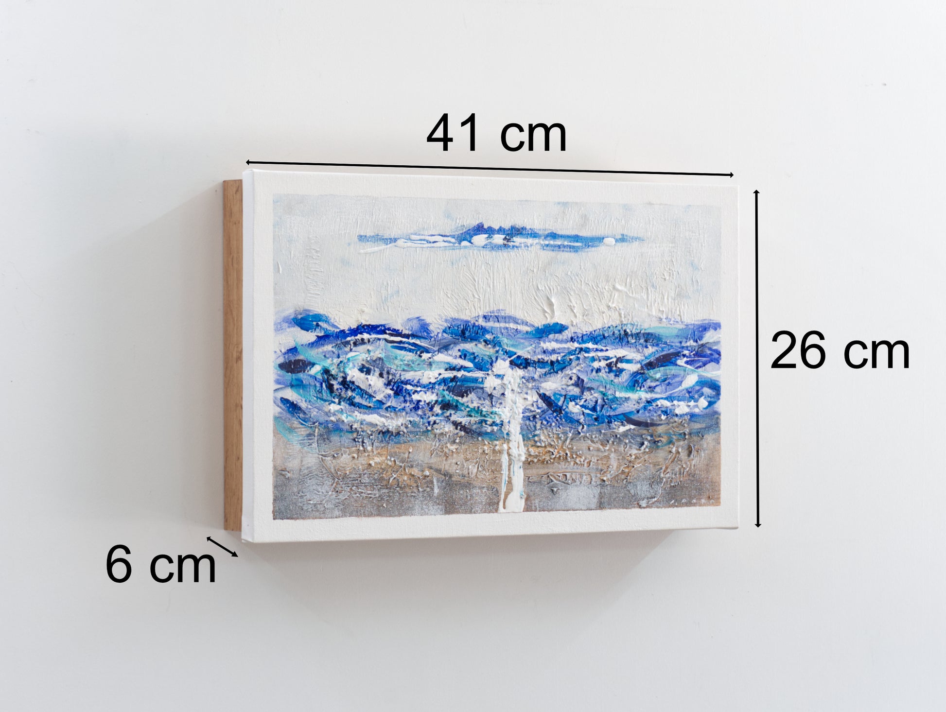 Tapa de Contador Pintada a Mano, 100% Original, en Madera Clara, Marina Abstracta, Incluye Tornillos y Tacos. Medidas: Interior 37x22x4cm